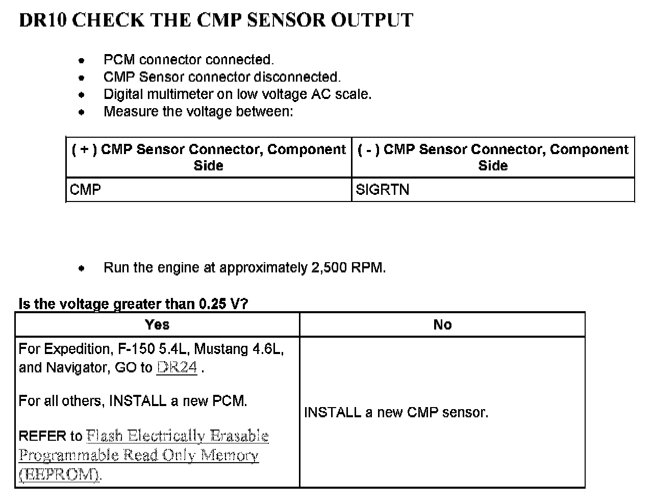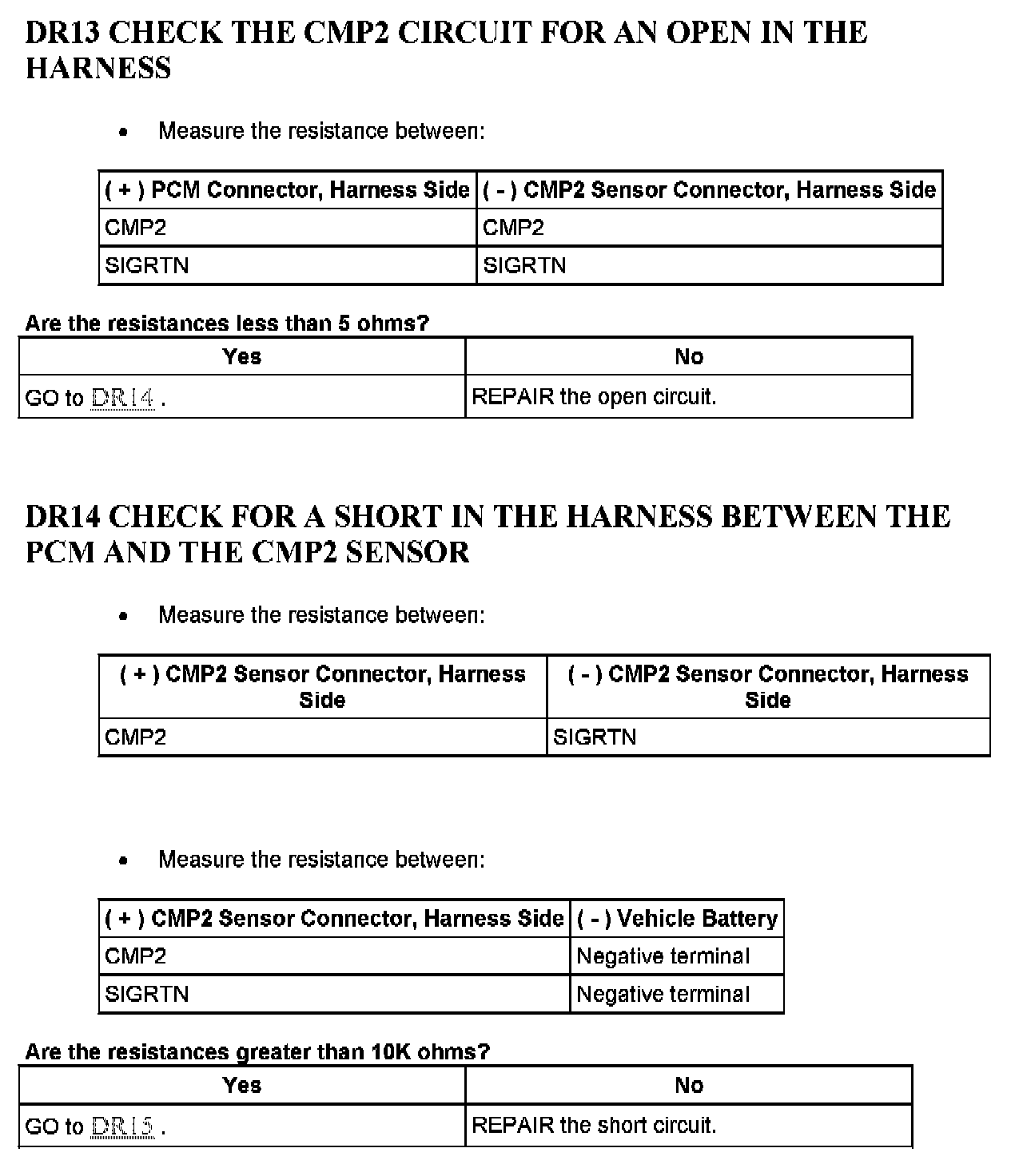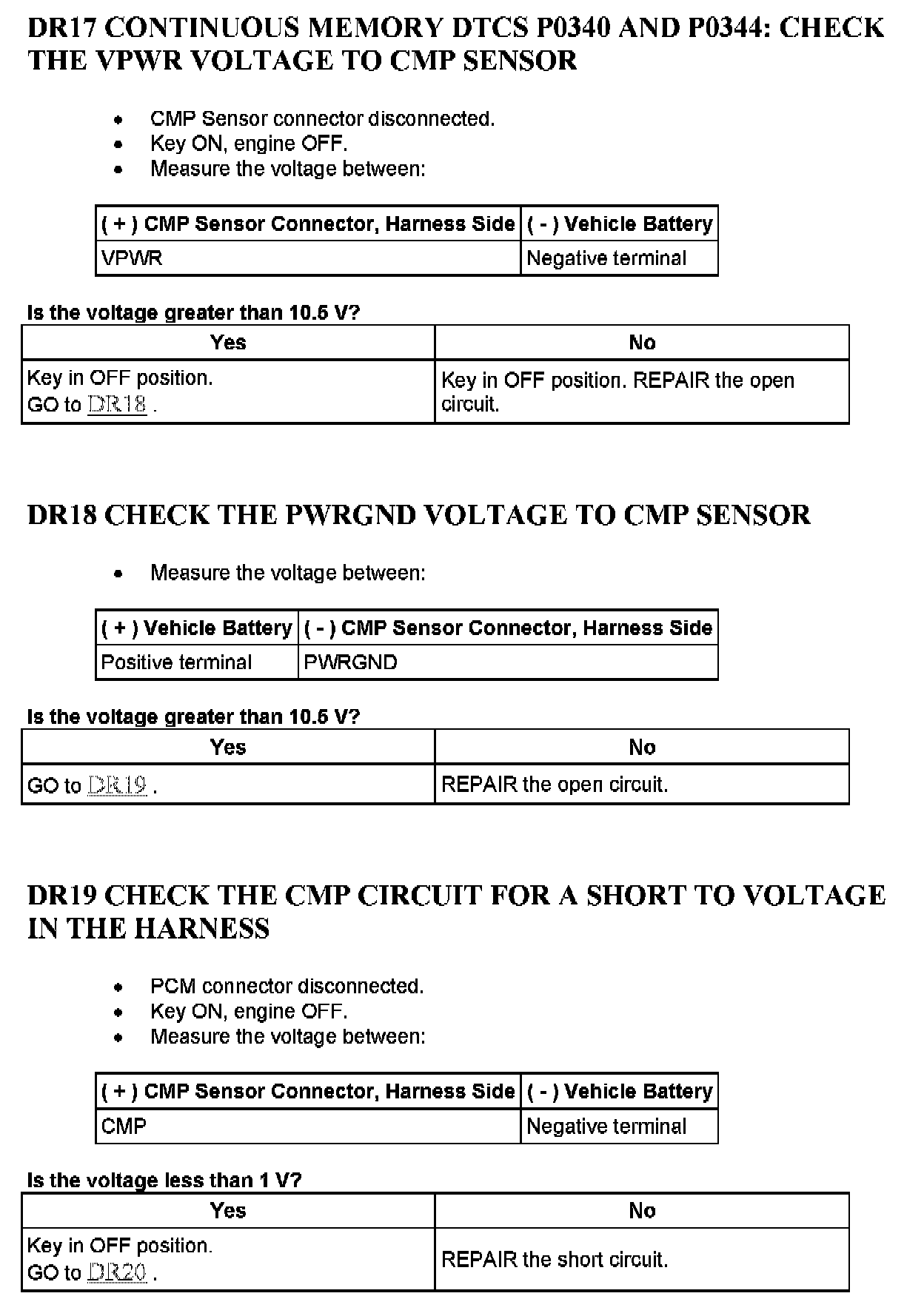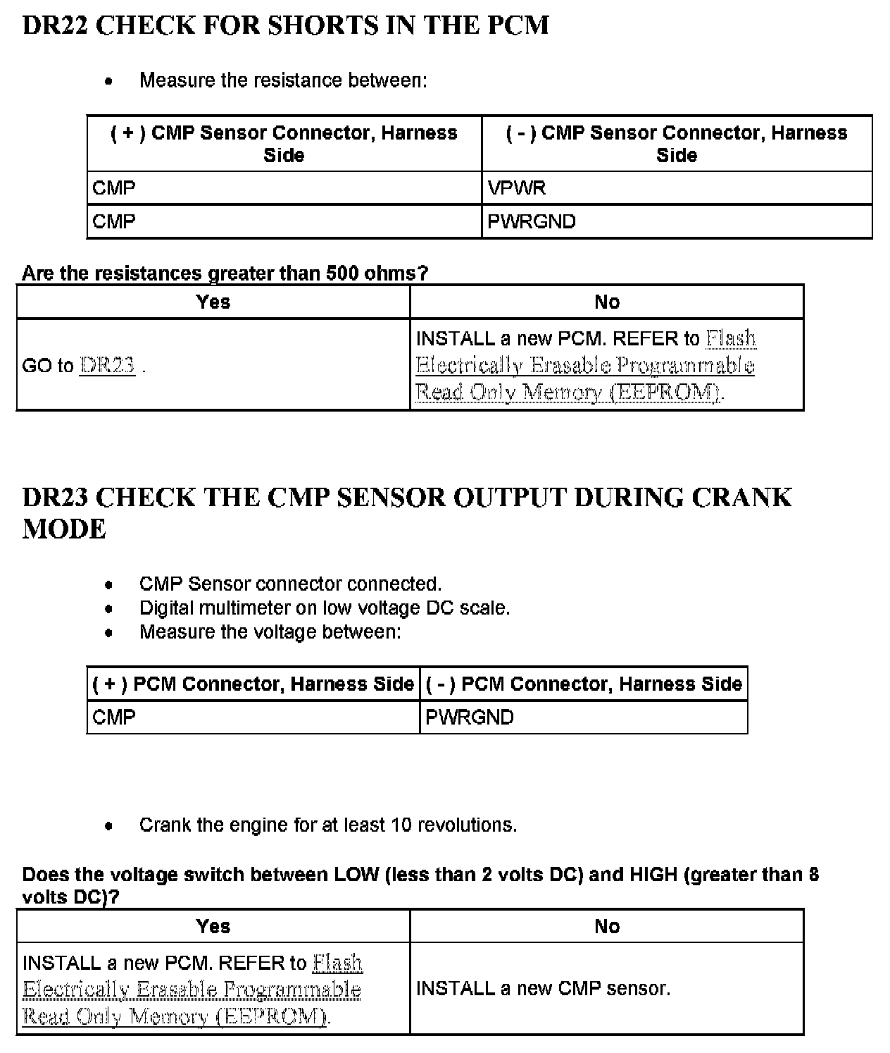Tests DR: Camshaft Position (CMP) Sensor