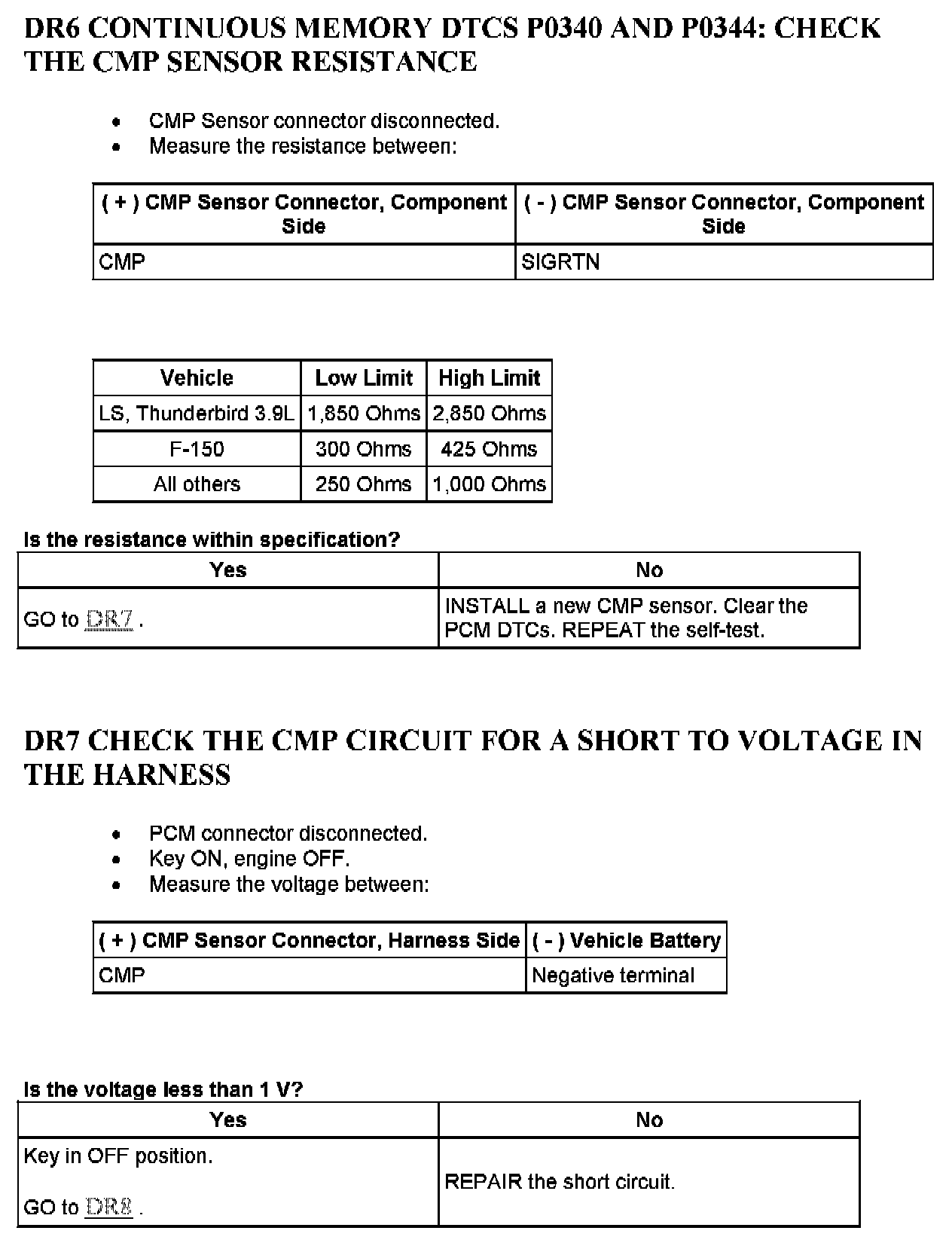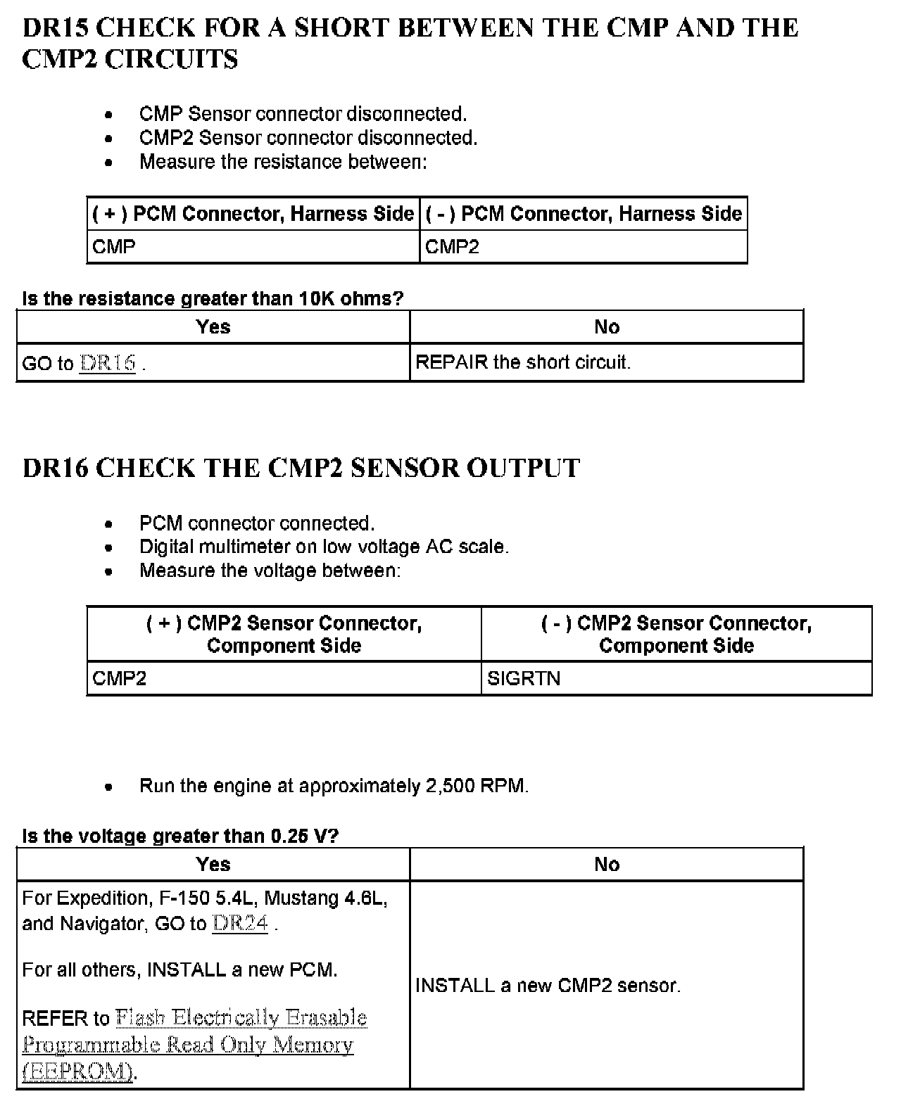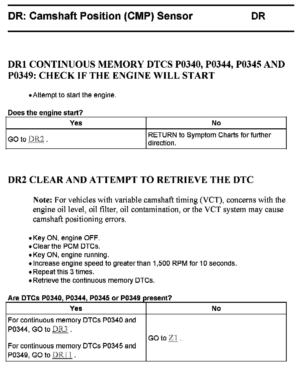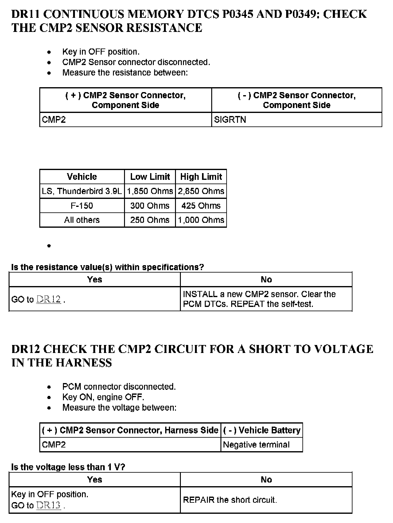 Tests DR: Camshaft Position (CMP) Sensor