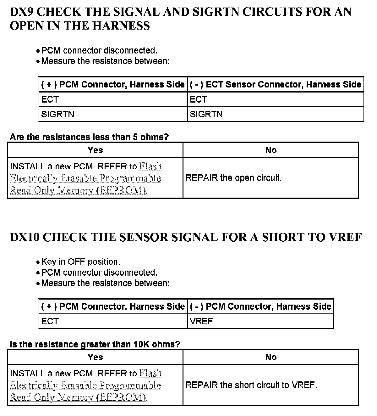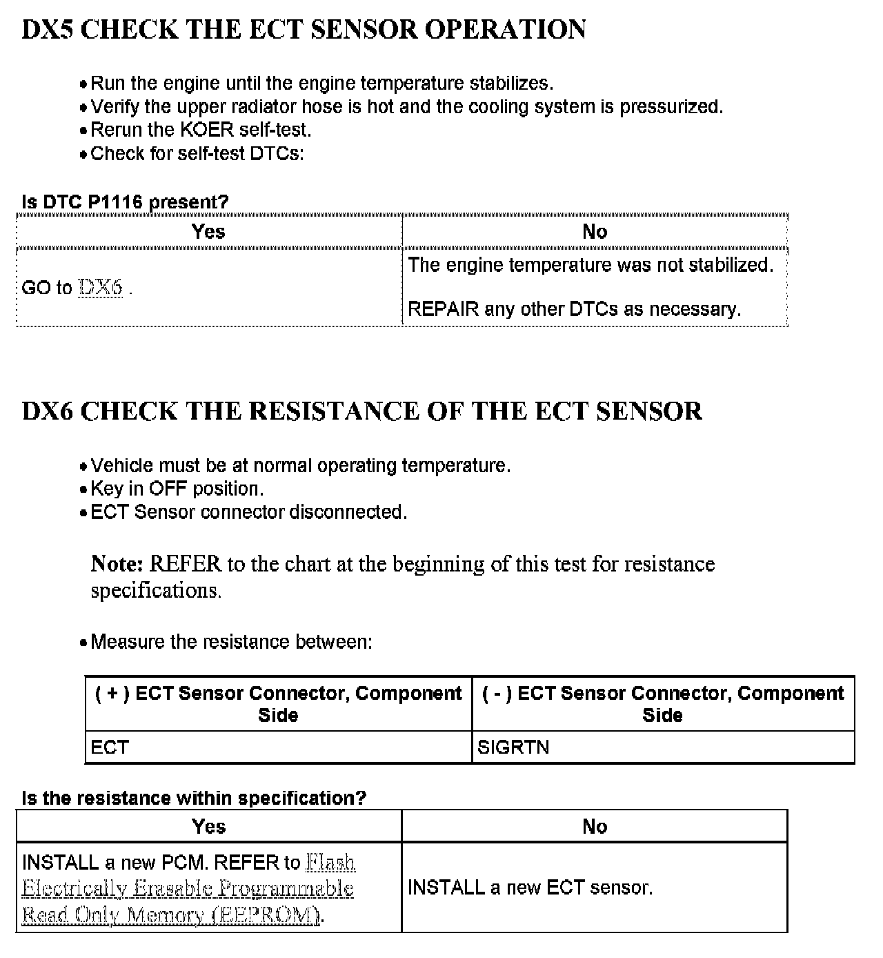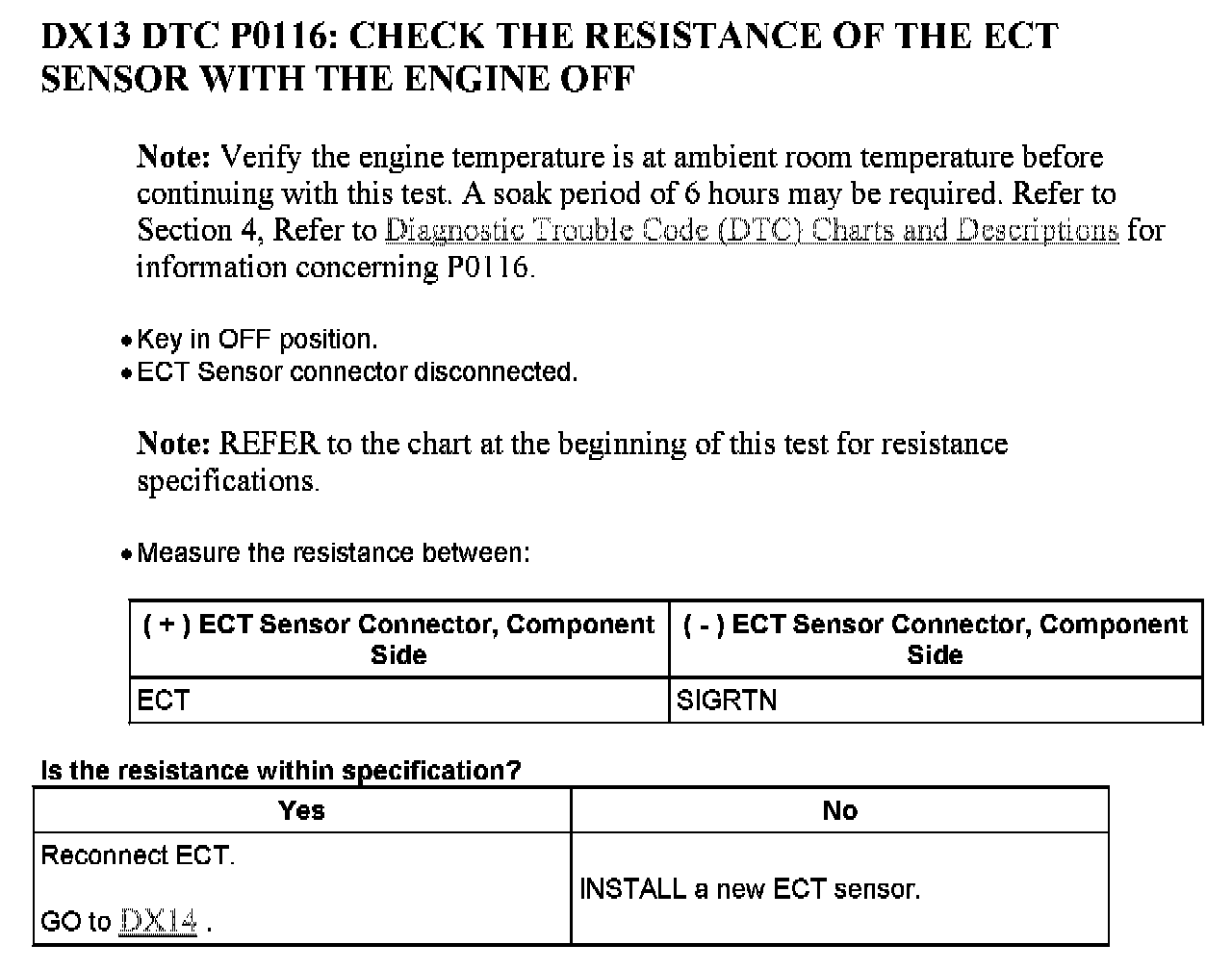 Tests DX: Engine Coolant Temperature (ECT) Sensor