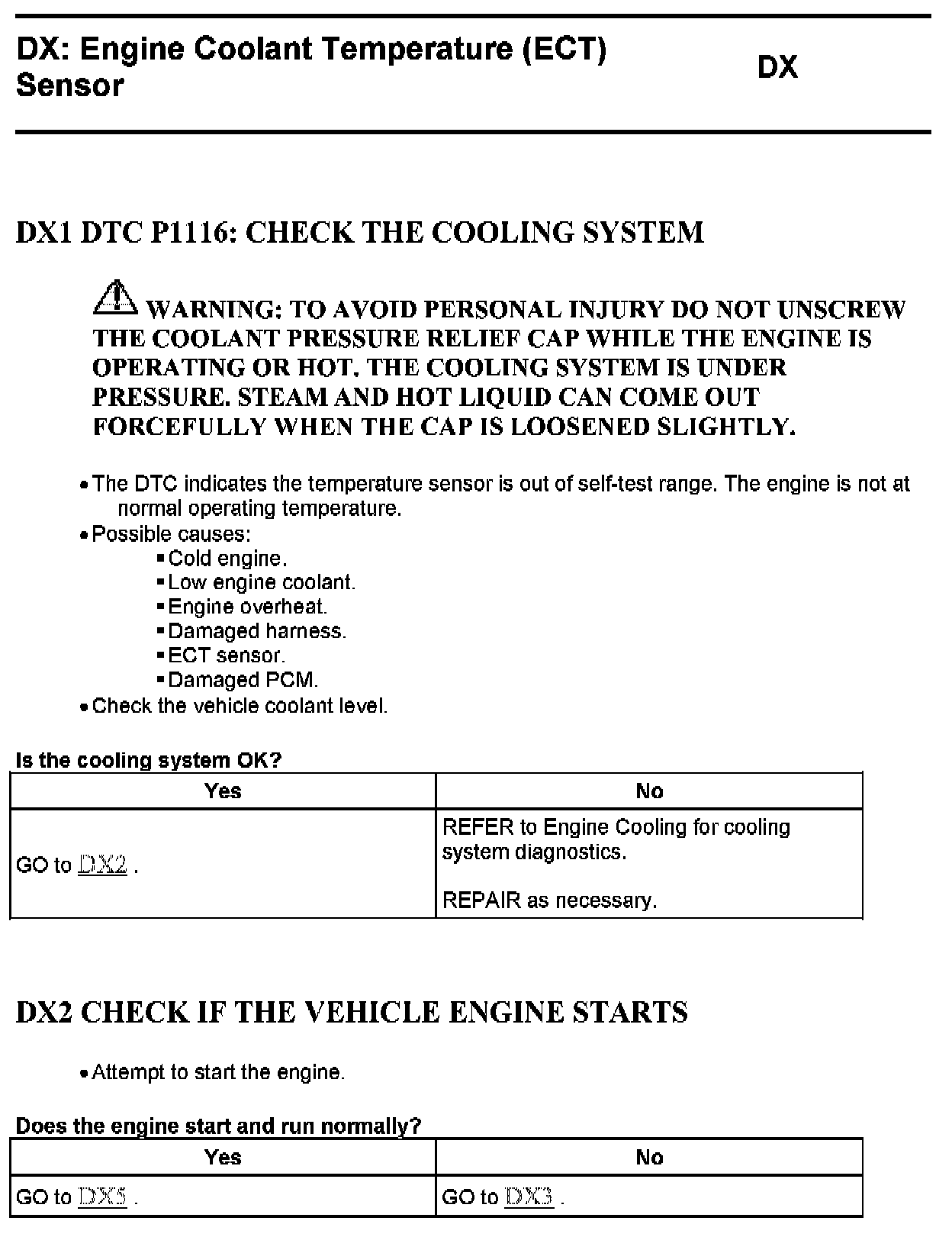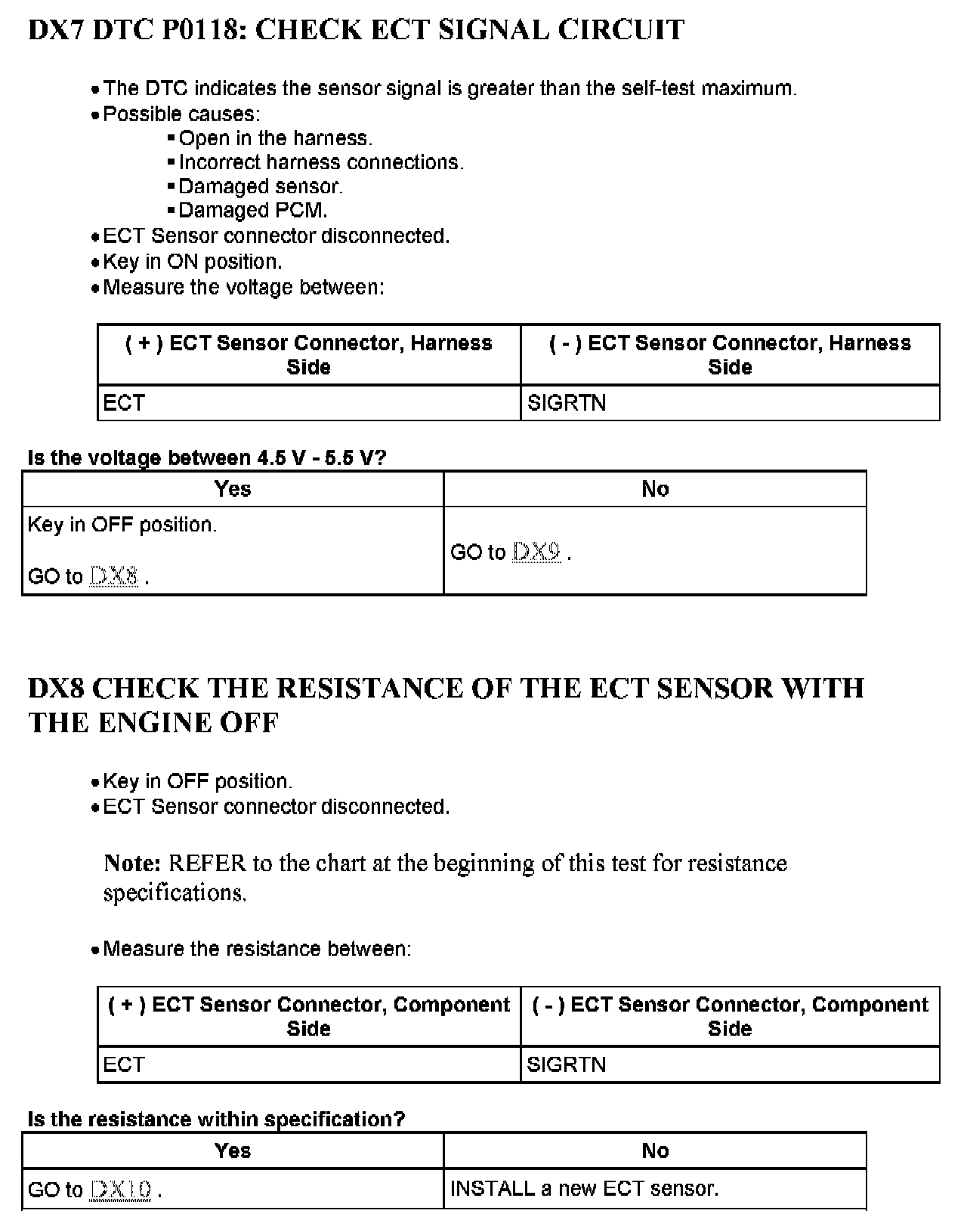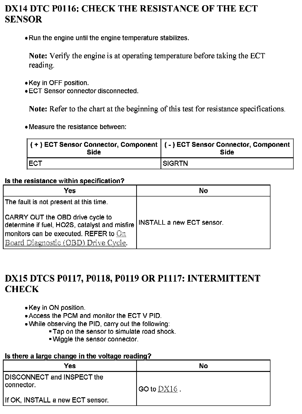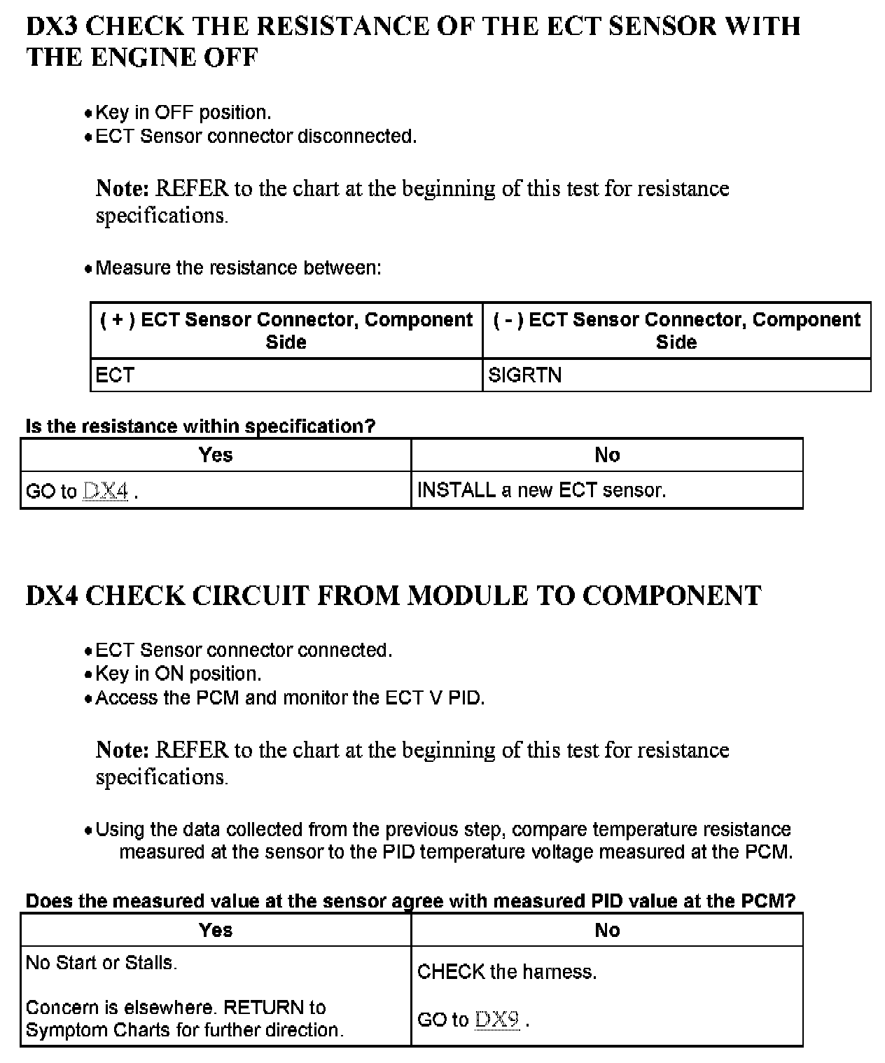 Tests DX: Engine Coolant Temperature (ECT) Sensor