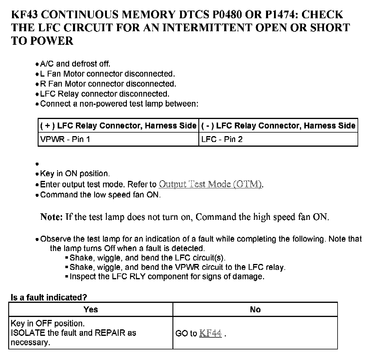 PINPOINT TEST KF: FAN CONTROL (FC) RELAYSKF Introduction: