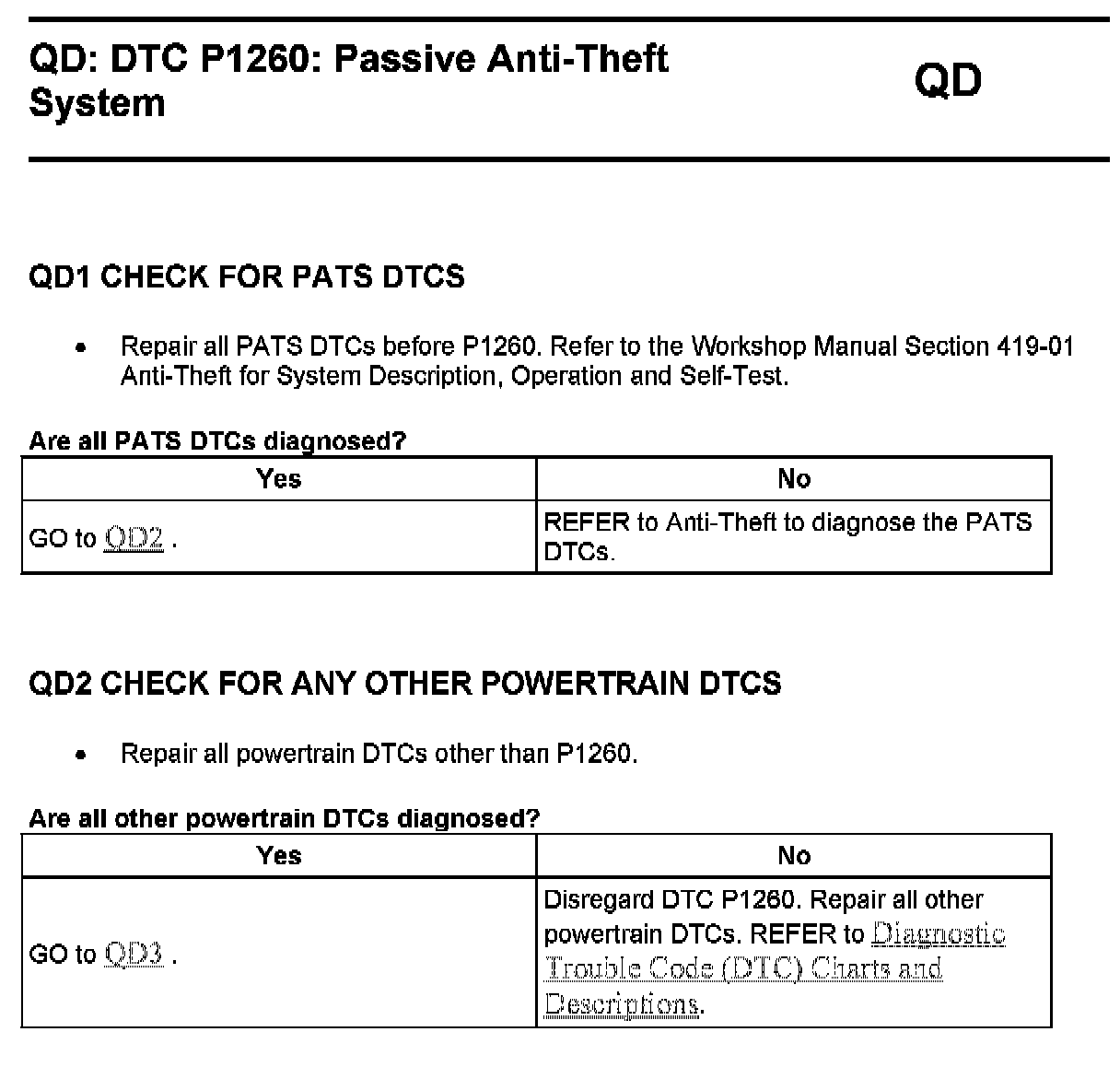 Tests QD: DTC P1260: Passive Anti-Theft System