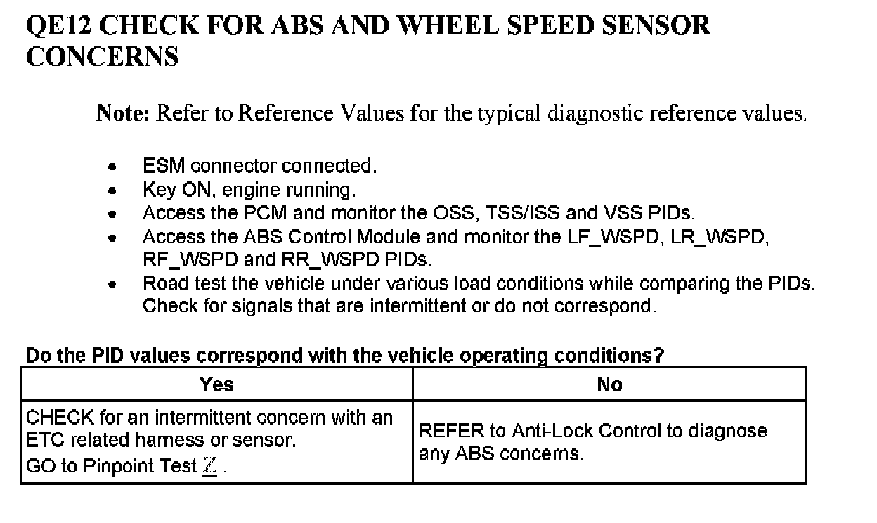 PINPOINT TEST QE: ELECTRONIC THROTTLE CONTROL (ETC) SYSTEM
