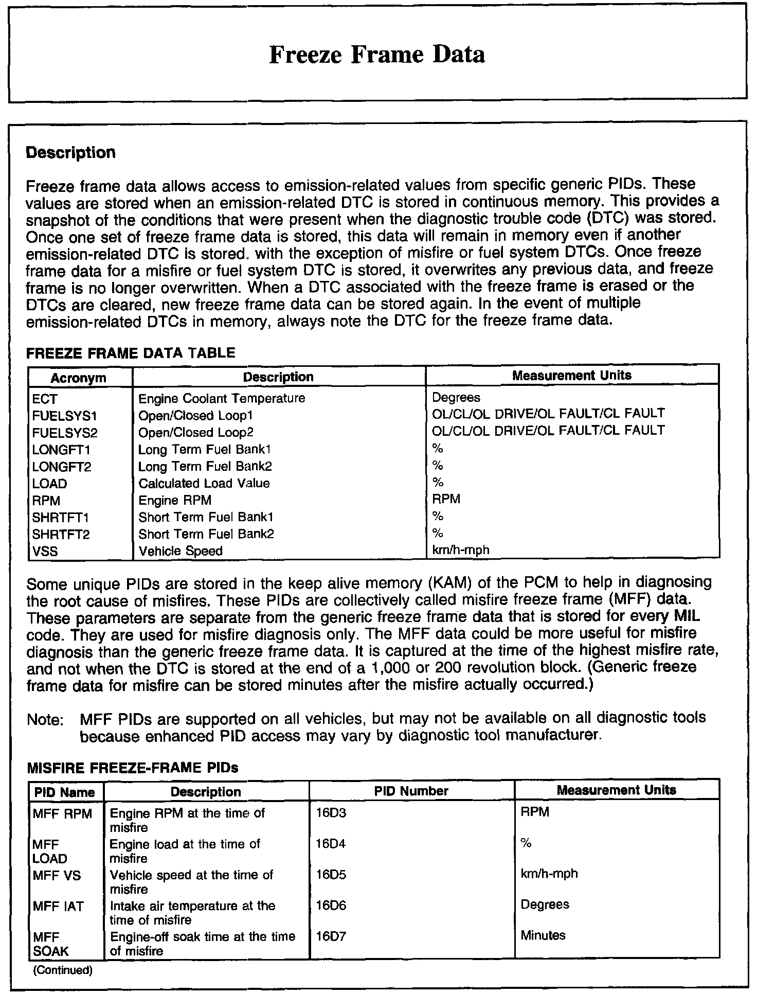 Freeze Frame Data