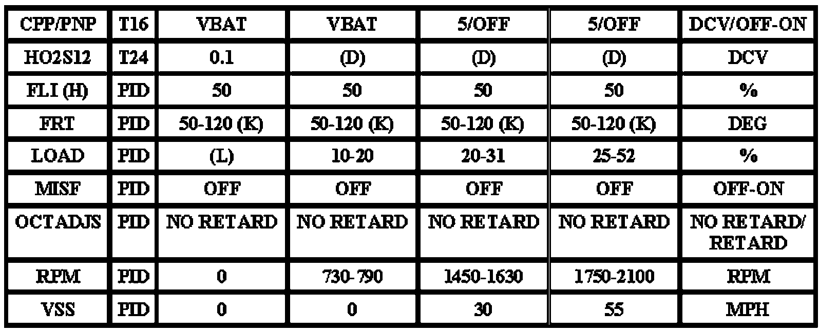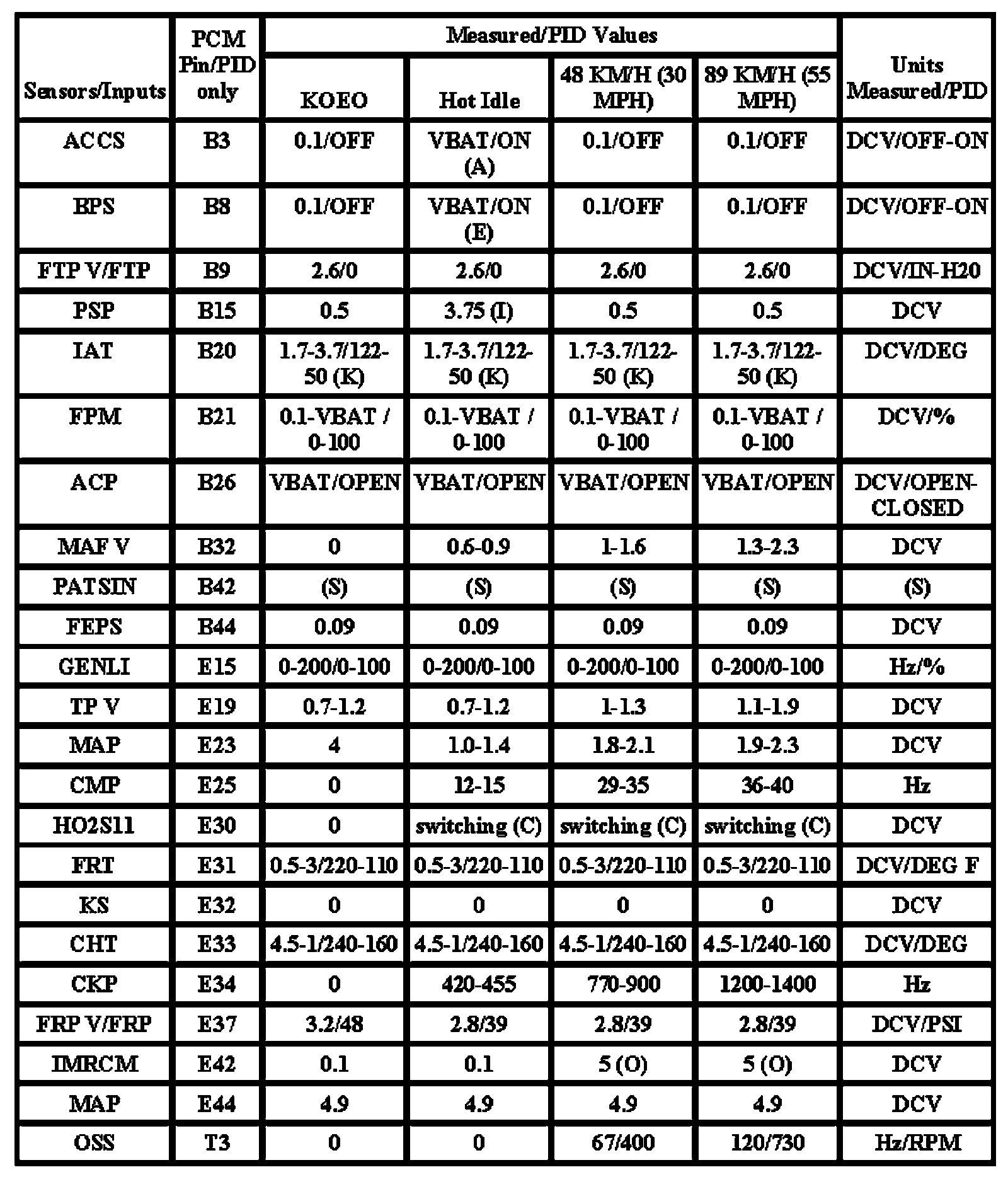 Note: All generic OBD readings under no load (PARK or NEUTRAL).