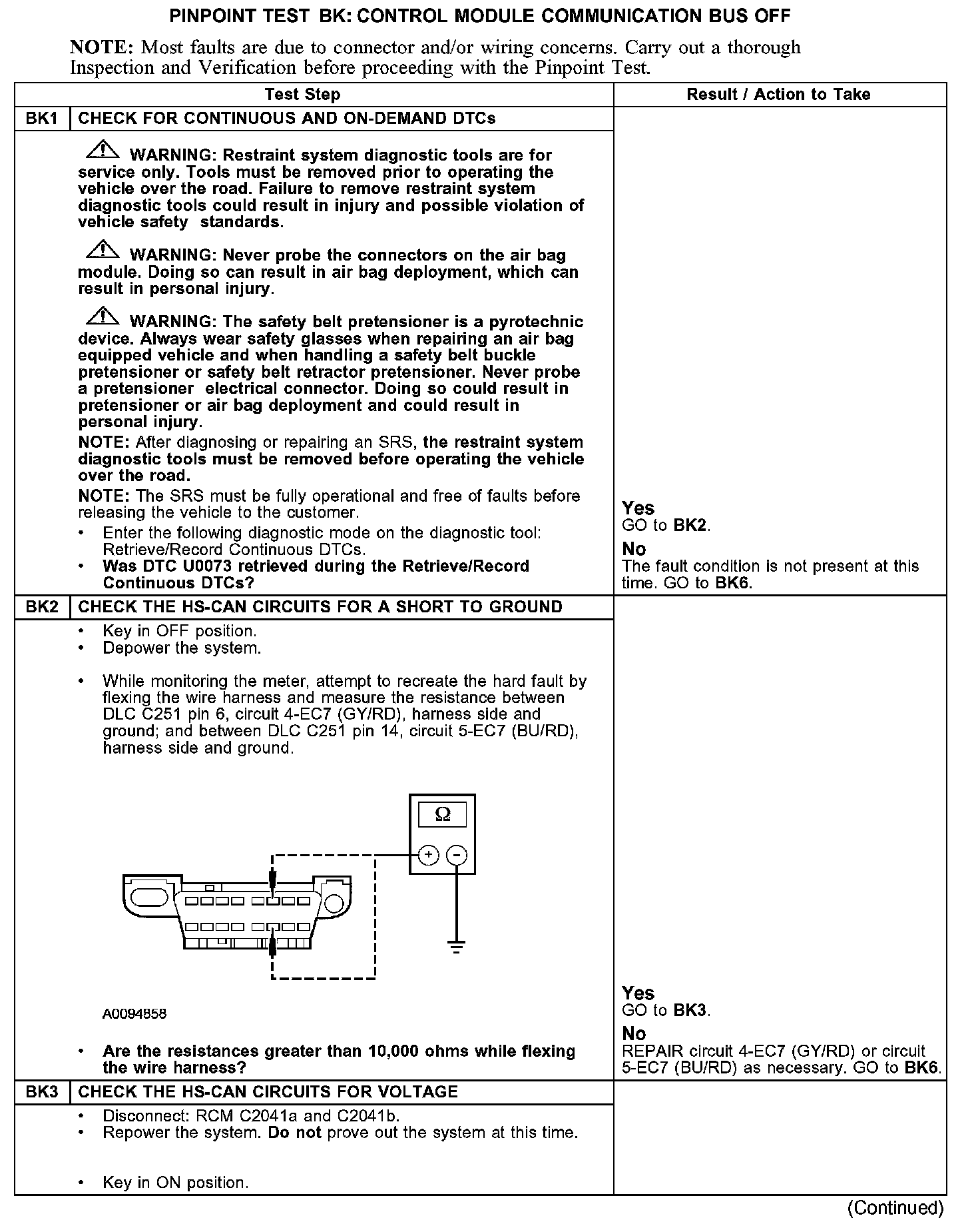 PINPOINT TEST BK: DTC U0073 - CONTROL MODULE COMMUNICATION BUS OFF