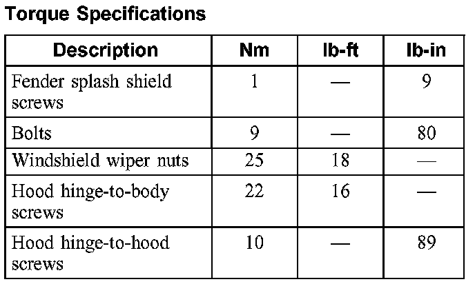 Torque Specifications: