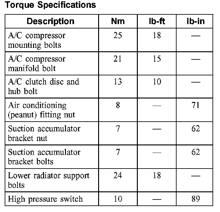 Torque Specifications: