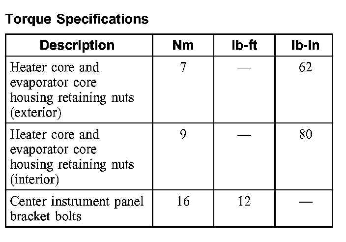 Torque Specifications: