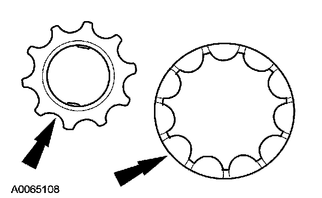 NOTE: The larger recess, with the beveled edge, must face toward the torque converter.