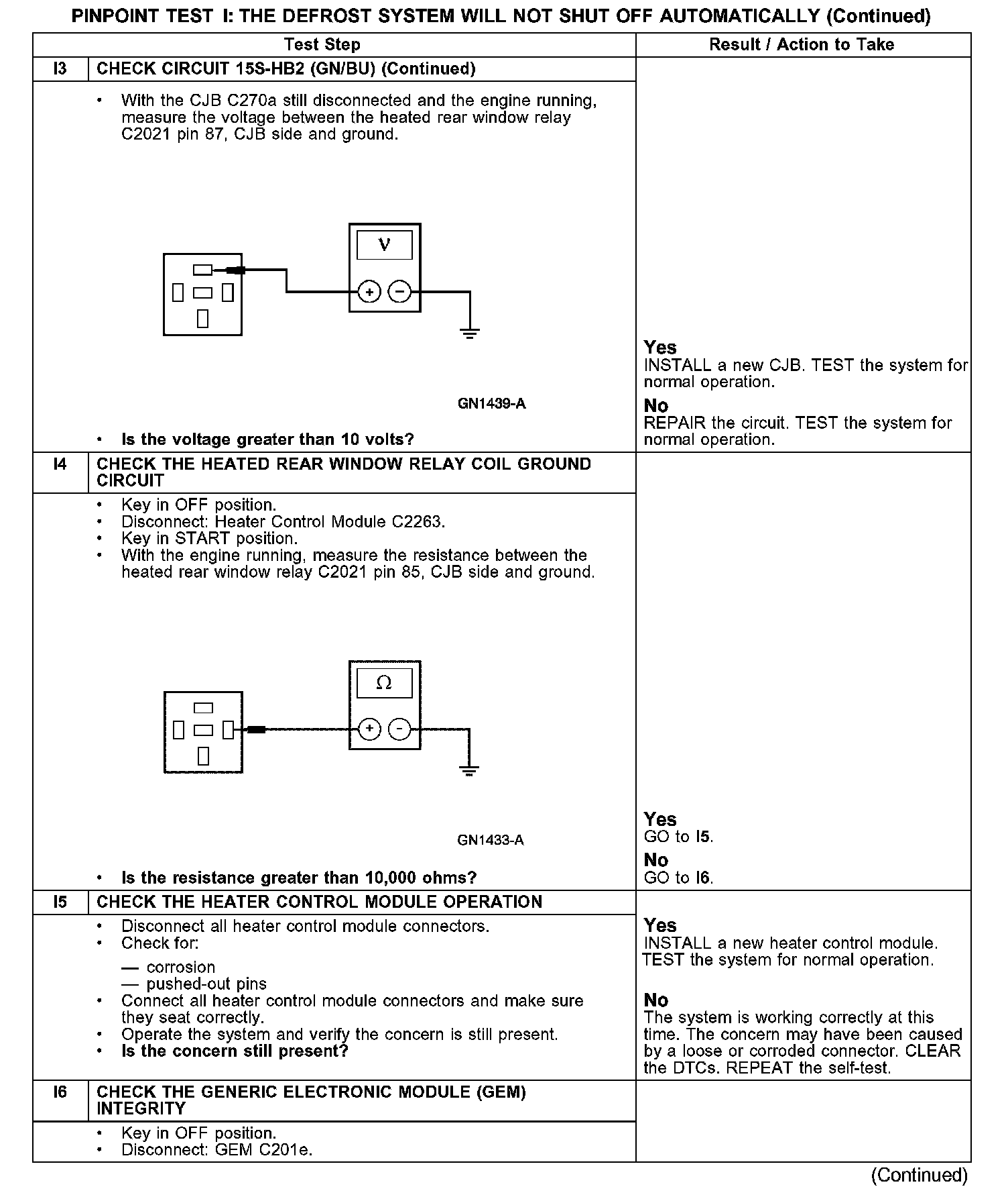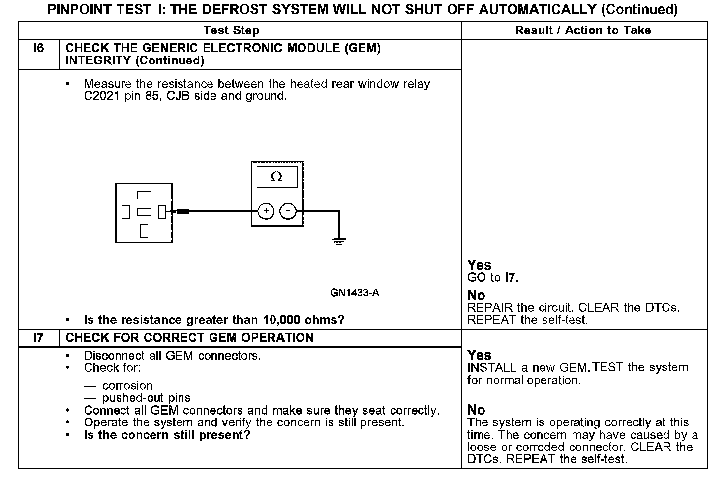PINPOINT TEST I: THE DEFROST SYSTEM WILL NOT SHUT OFF AUTOMATICALLY