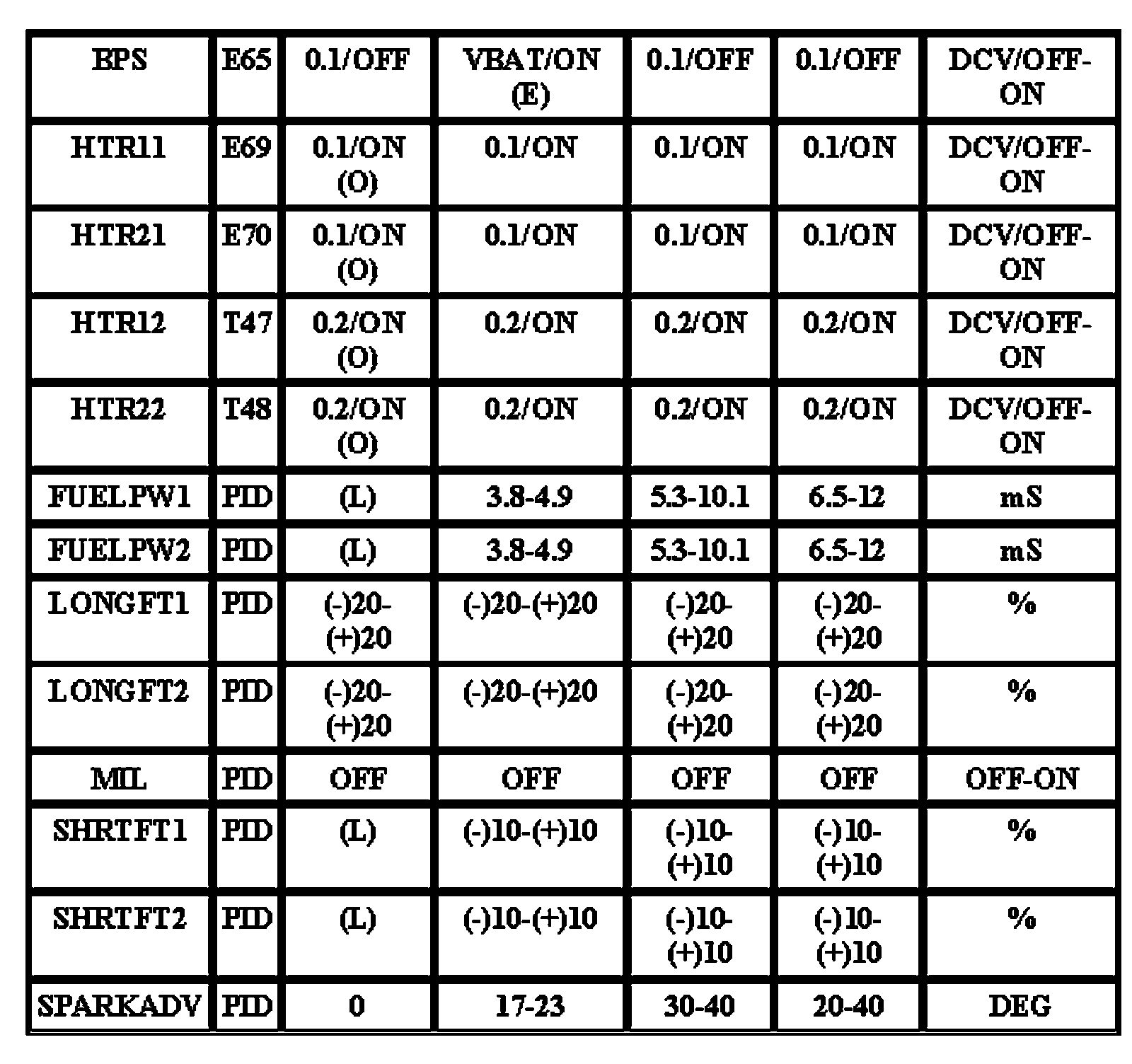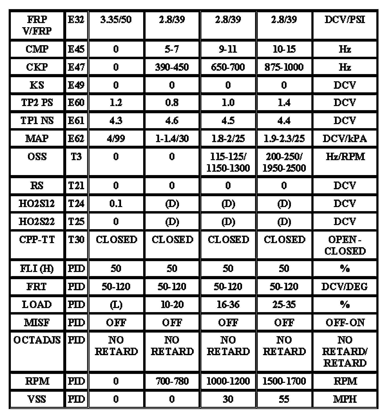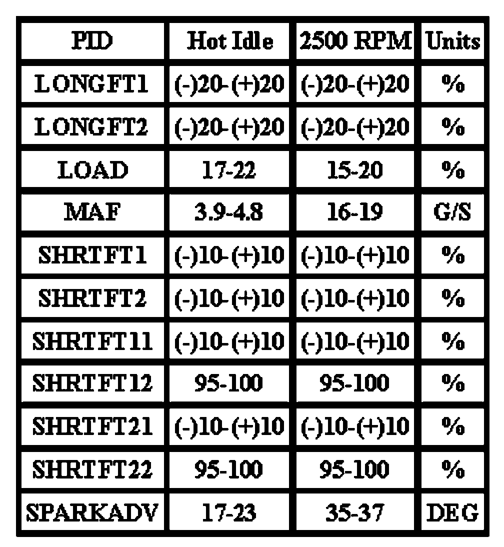Note: All generic OBD readings under no load (PARK or NEUTRAL).