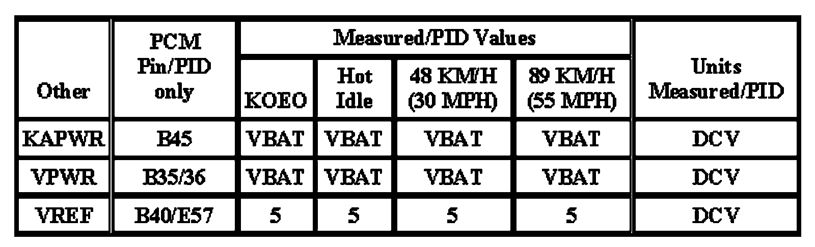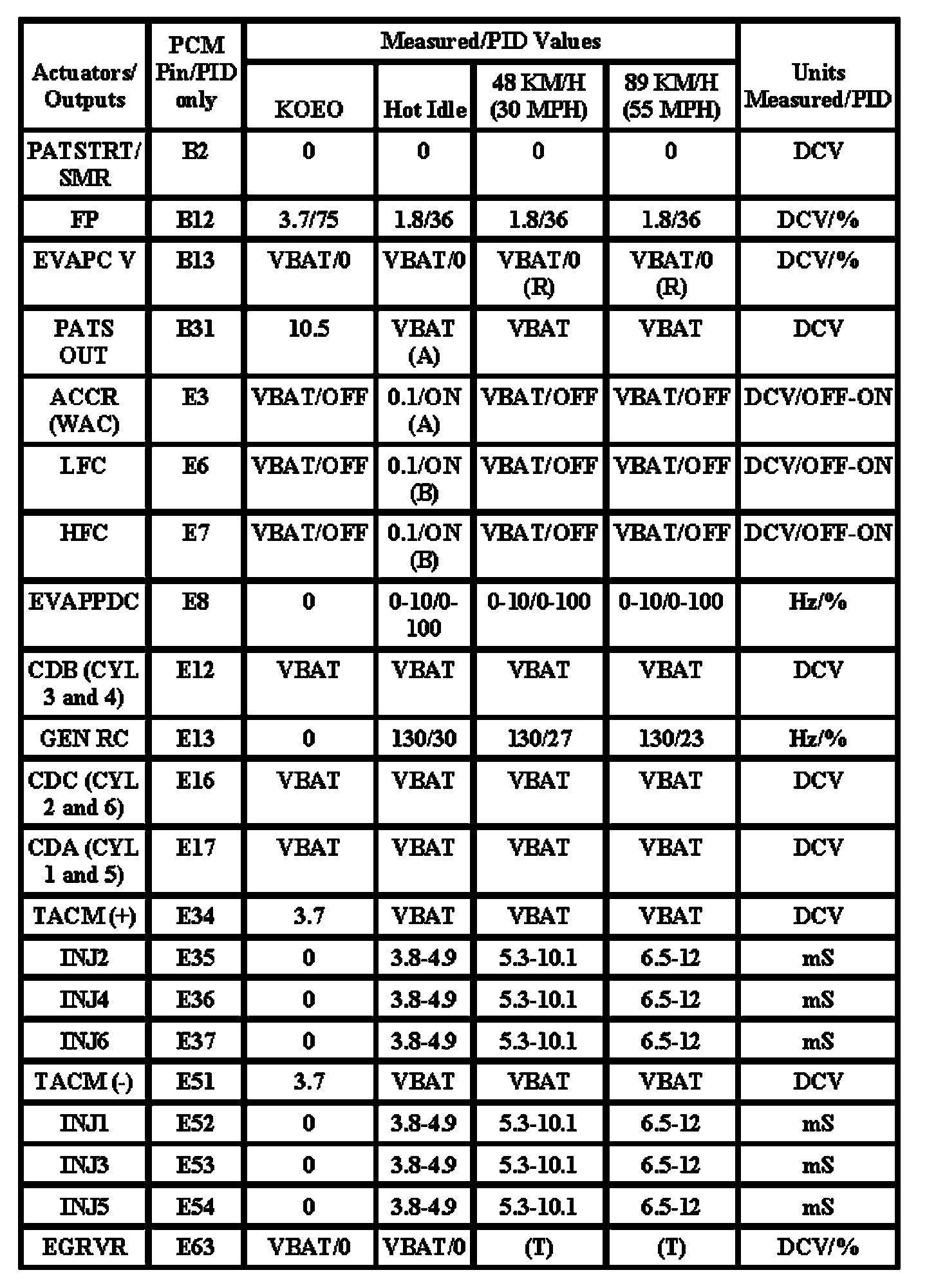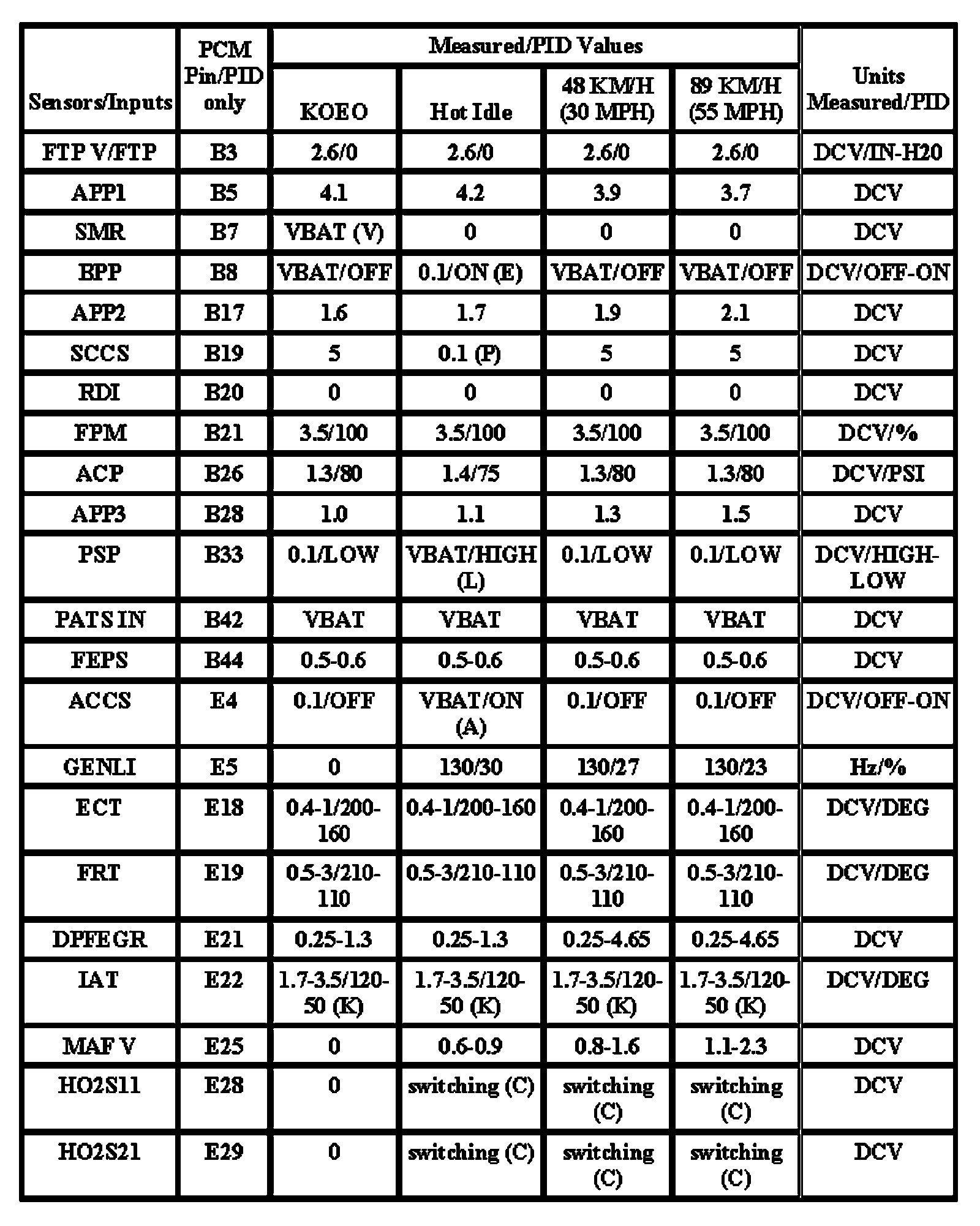 Note: All generic OBD readings under no load (PARK or NEUTRAL).