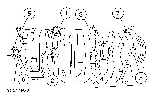 Tighten the bolts in the sequence shown to 35 Nm (26 ft. lbs.) and then rotate an additional 57 degrees.