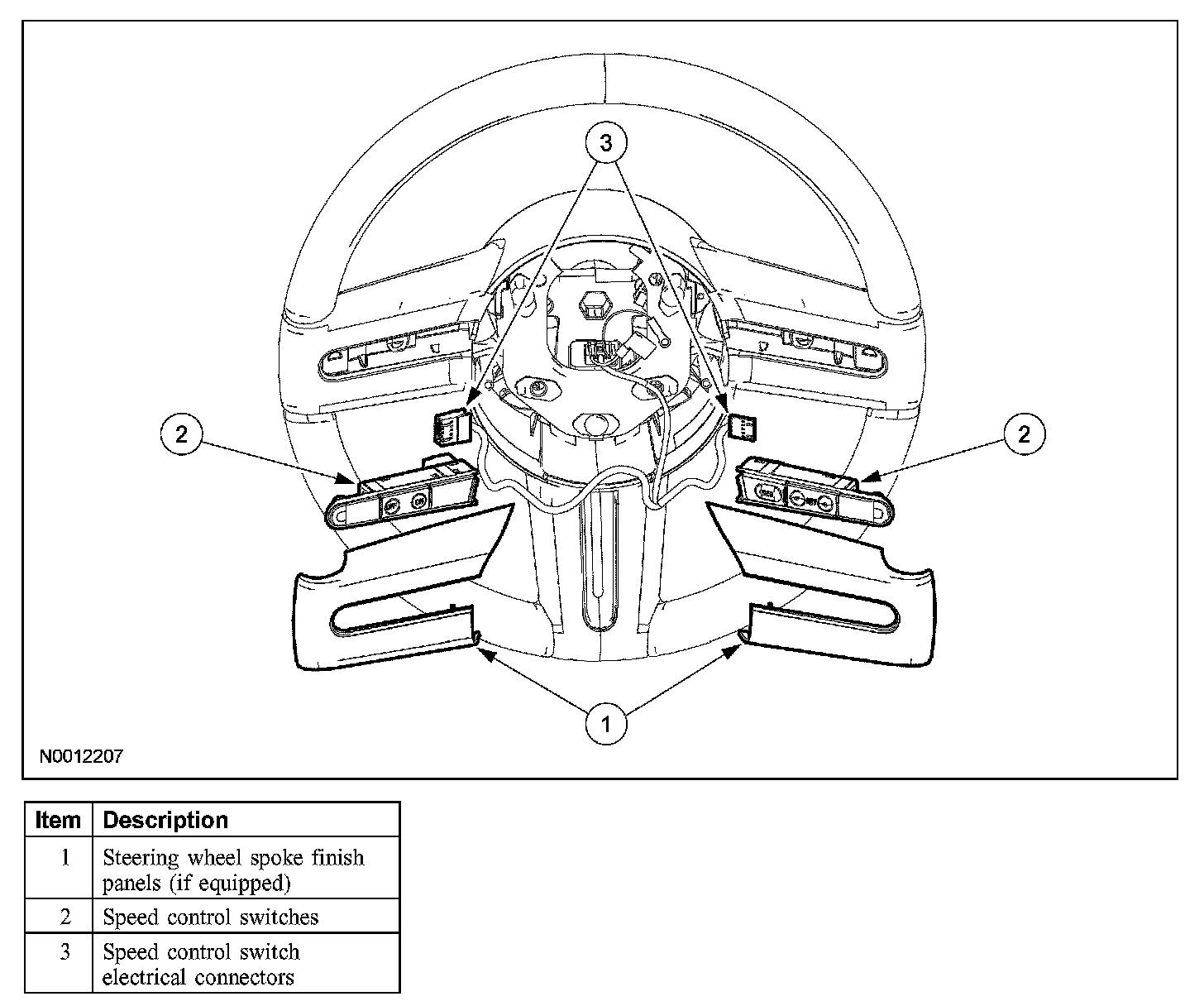 3. NOTE: Using a suitable tool, remove the speed control switches from the steering wheel. Use care not to damage the steering wheel.