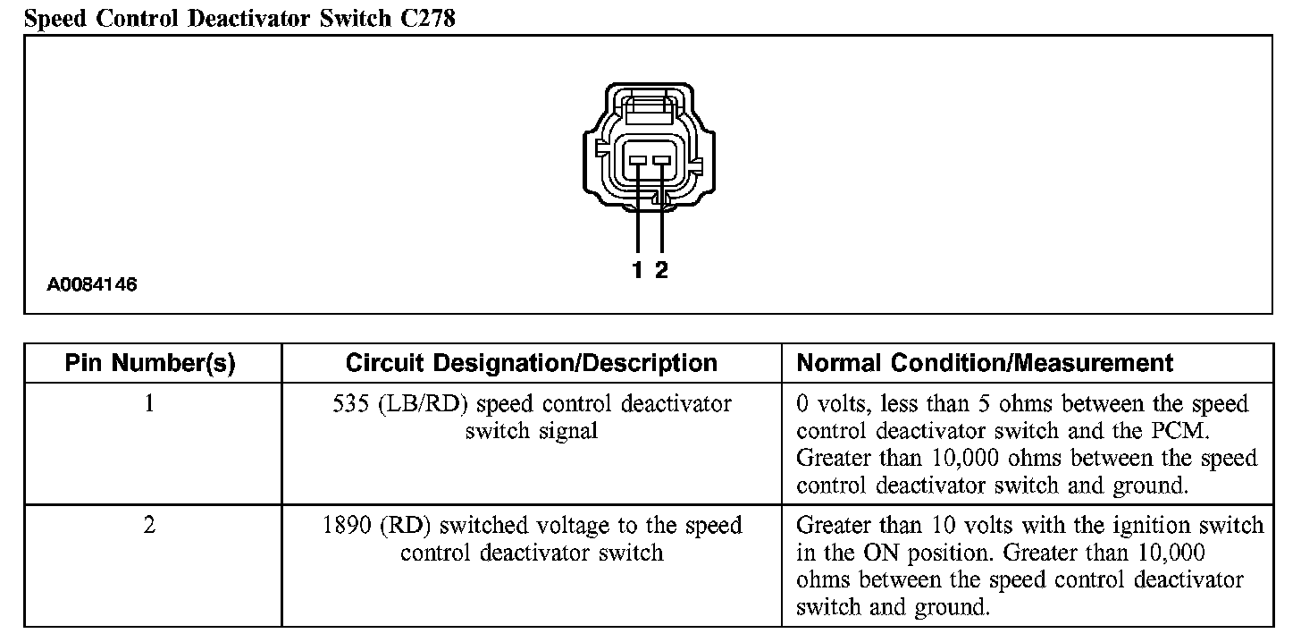 Speed Control Deactivator Switch C278: