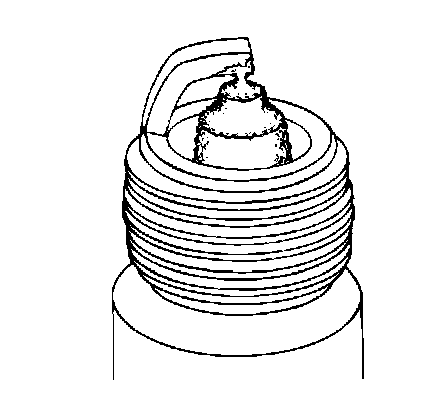 5. Inspect for preignition, identified by melted electrodes and a possibly damaged insulator. Metallic deposits on the insulator indicate engine damage. This may be caused by incorrect ignition timing, wrong type of fuel or the unauthorized installation of a heli-coil insert in place of the spark plug threads.