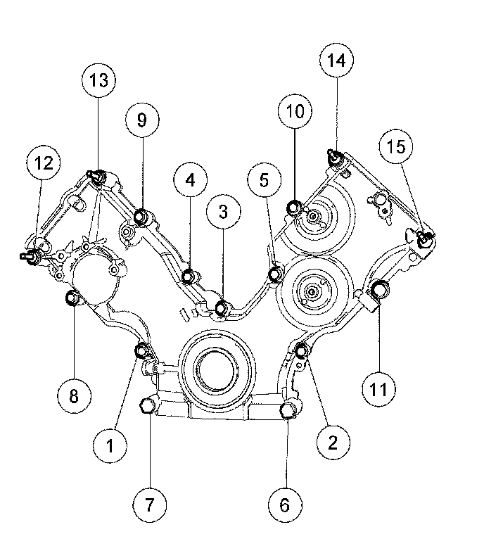 Tighten the engine front cover fasteners in the sequence shown to 25 Nm (18 ft. lbs.).