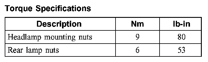 Torque Specifications: