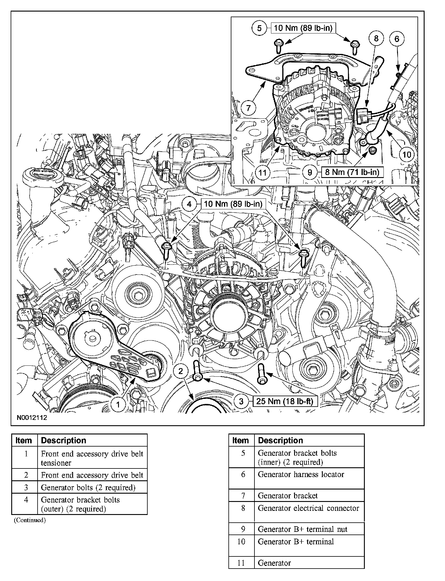 6. Remove the 2 outer generator bracket bolts and position the generator aside.