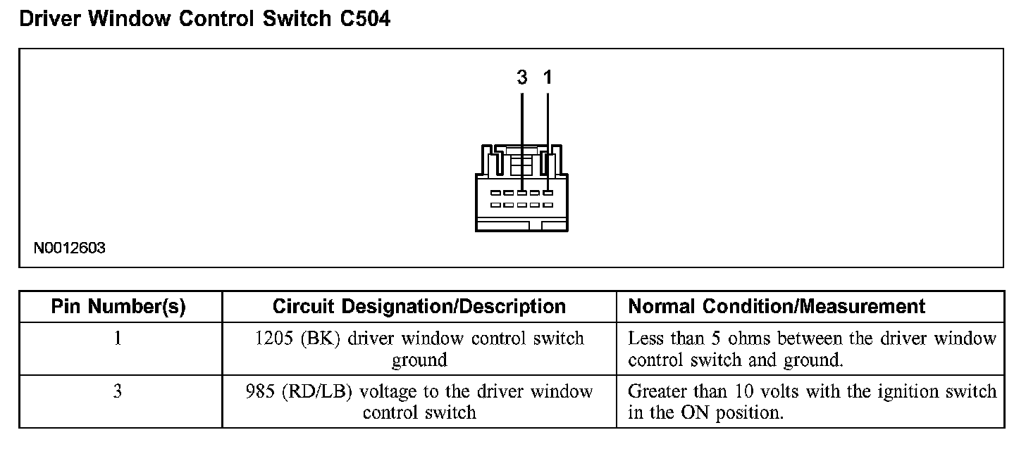 Driver Window Control Switch C504:
