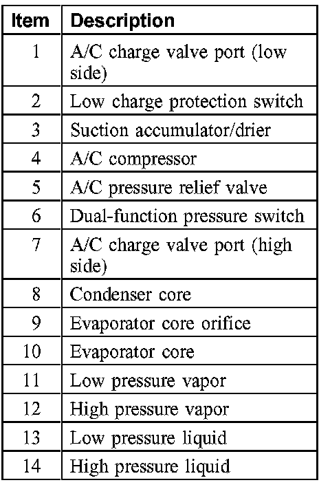 During stabilized conditions (air conditioning system shutdown), the refrigerant is in a vaporized state and pressures are equal throughout the system. When the A/C compressor is in operation it increases pressure on the refrigerant vapor raising its temperature. The high-pressure and high-temperature vapor is then released into the top of the condenser core.
