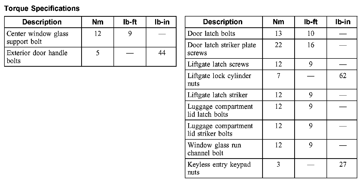Torque Specifications: