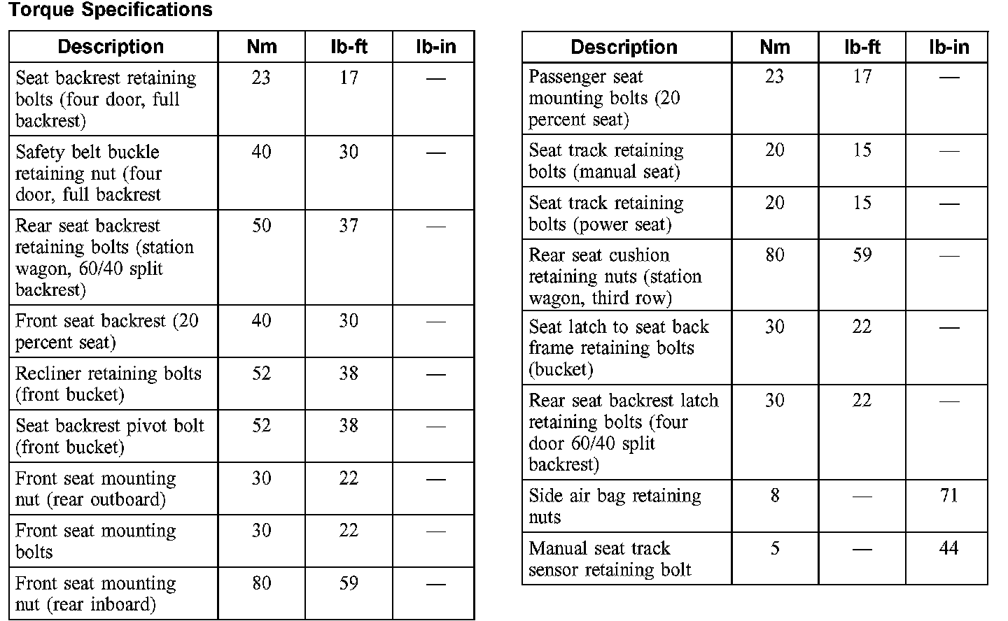 Torque Specifications: