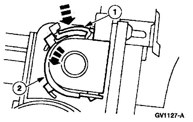 1 Press the speed control cable cap retaining tab.