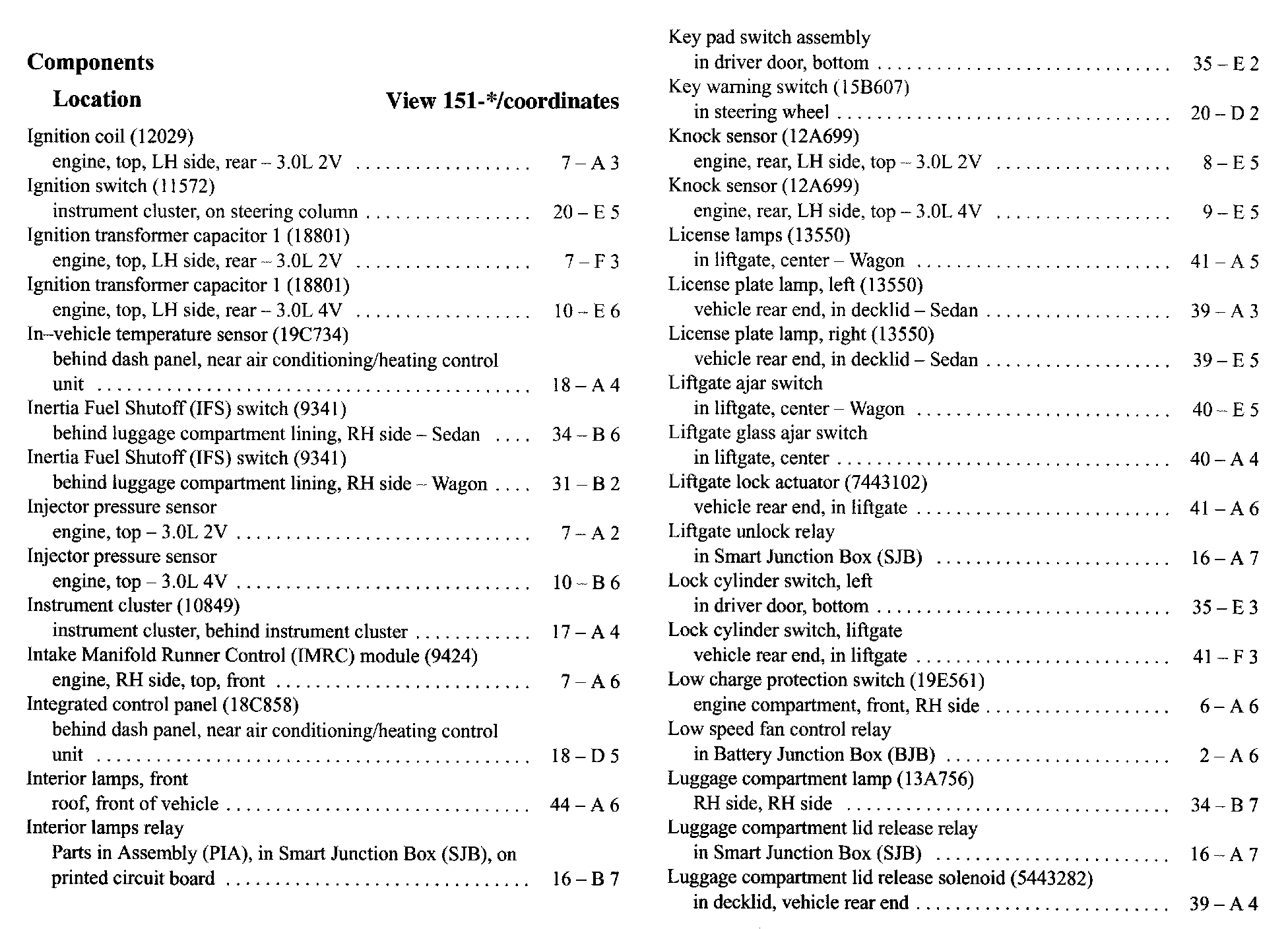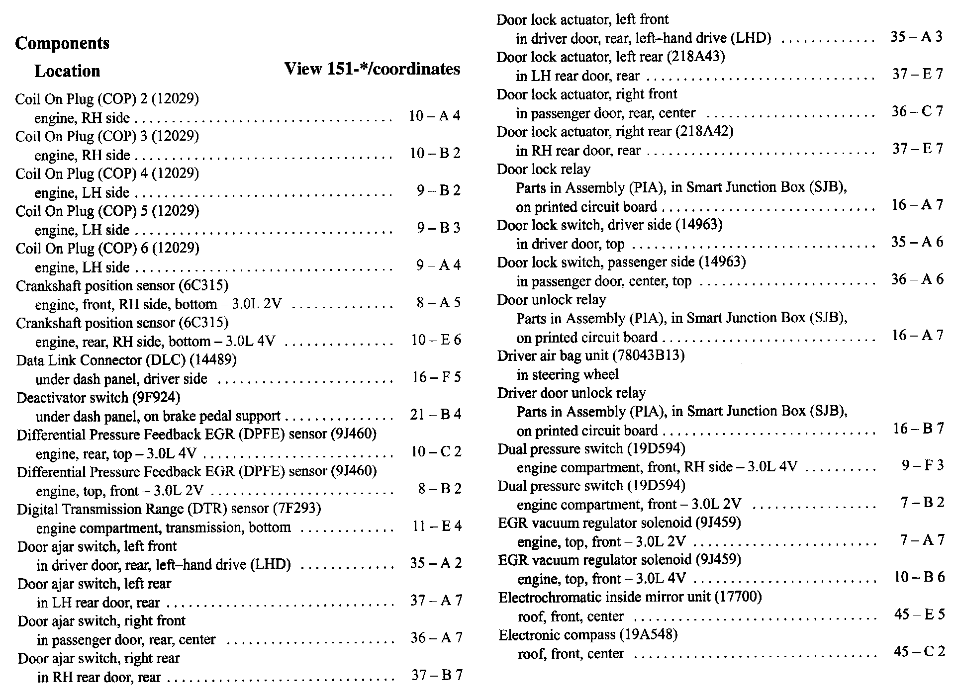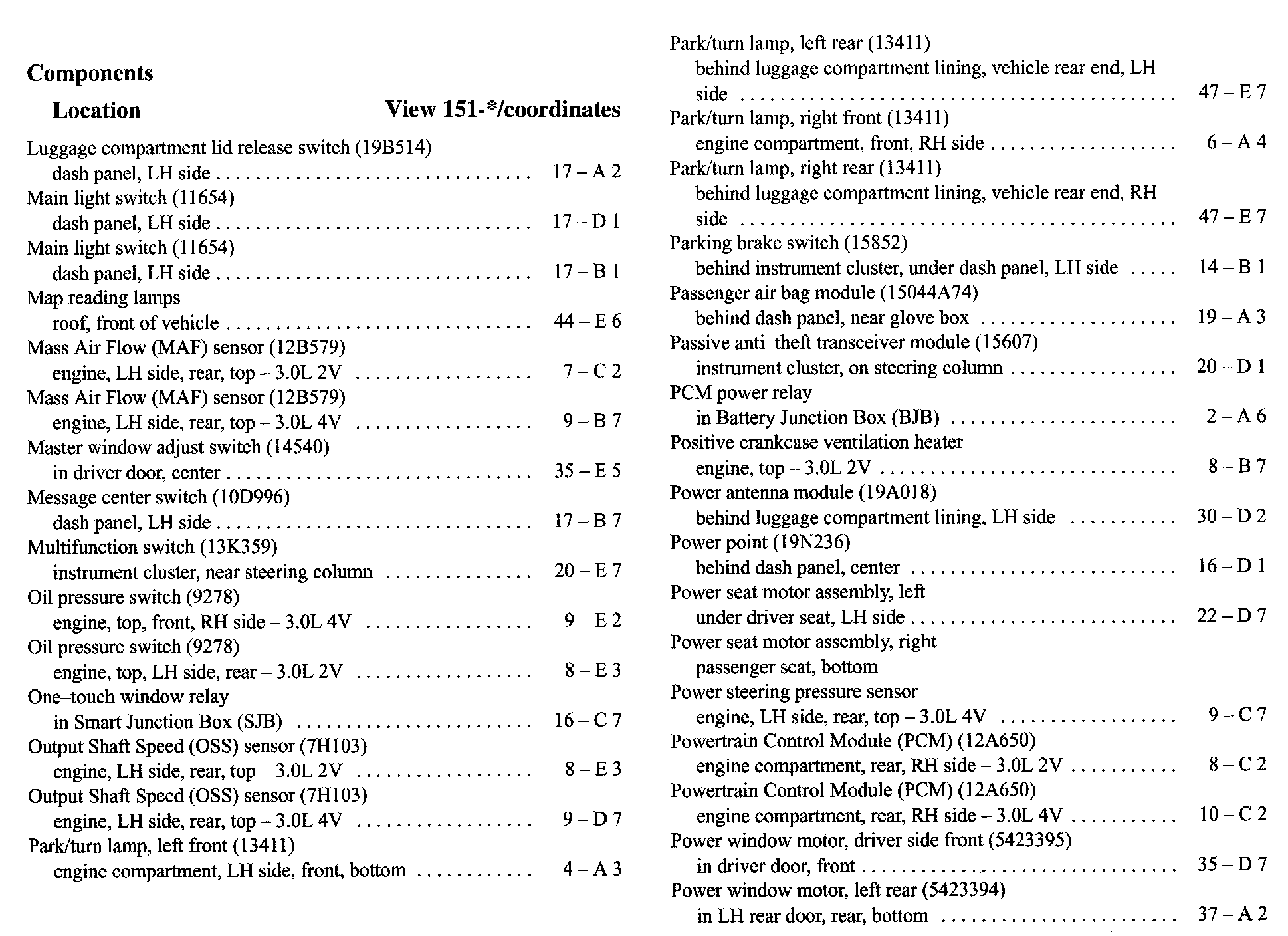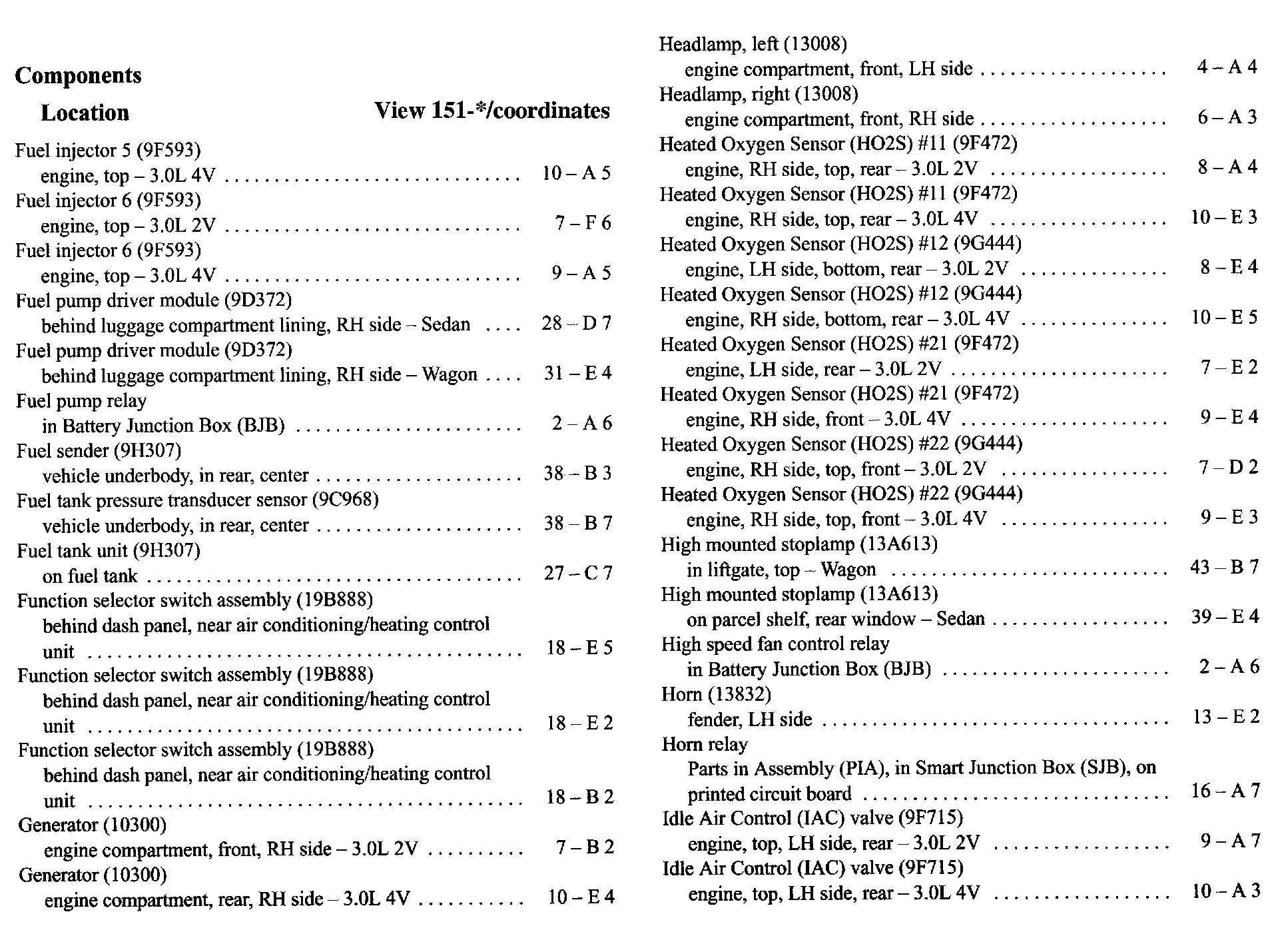 Component Location Index