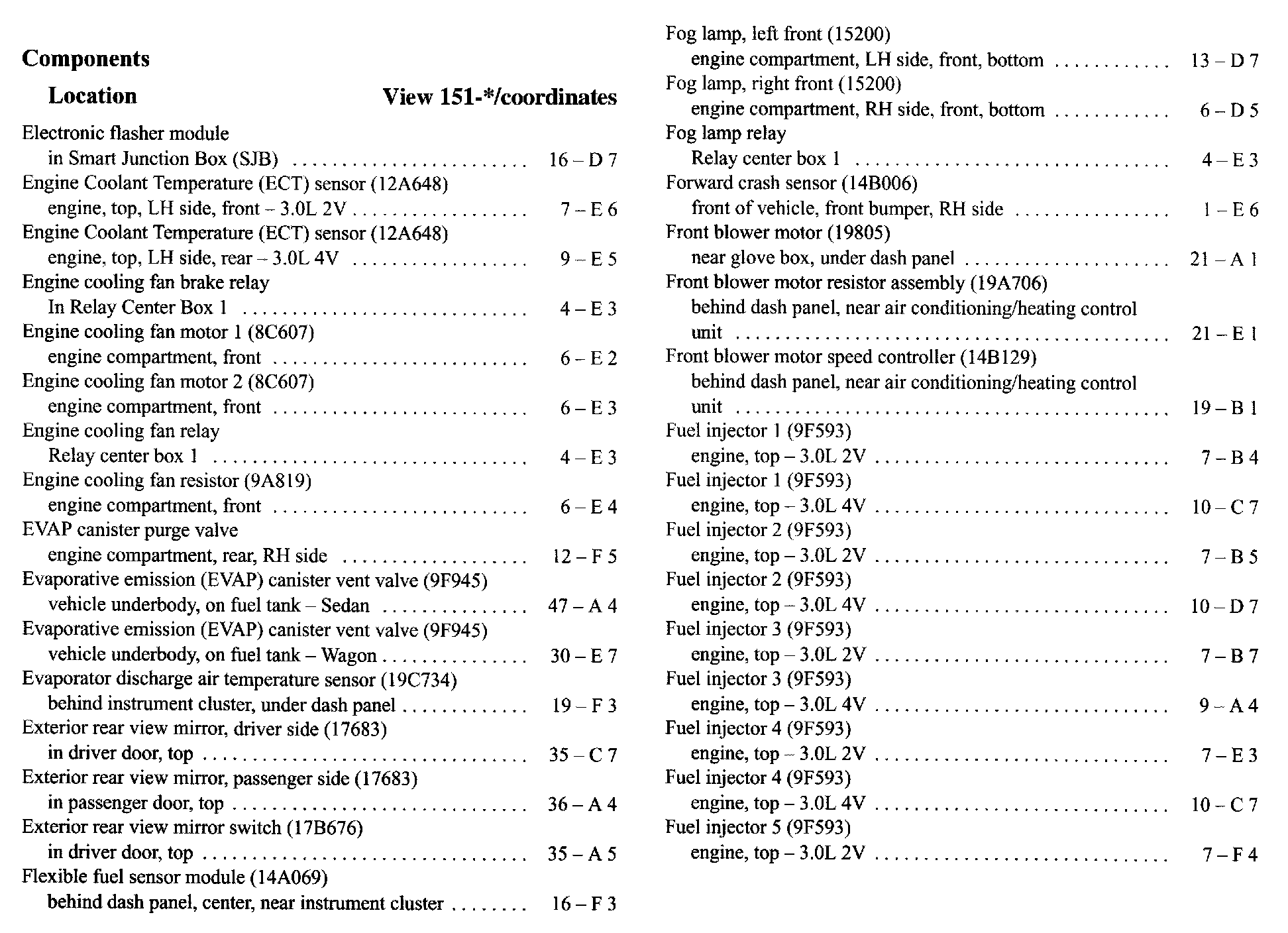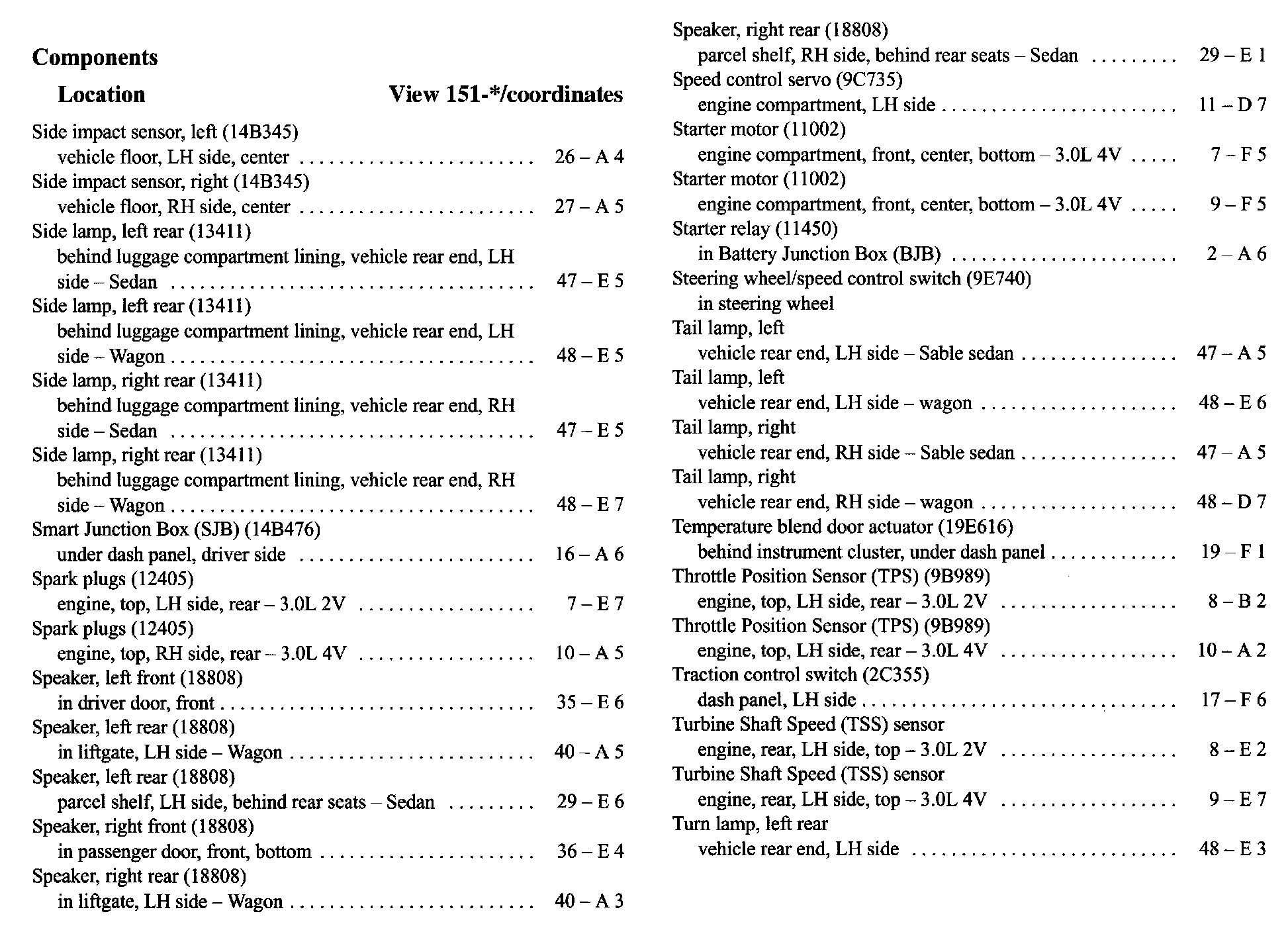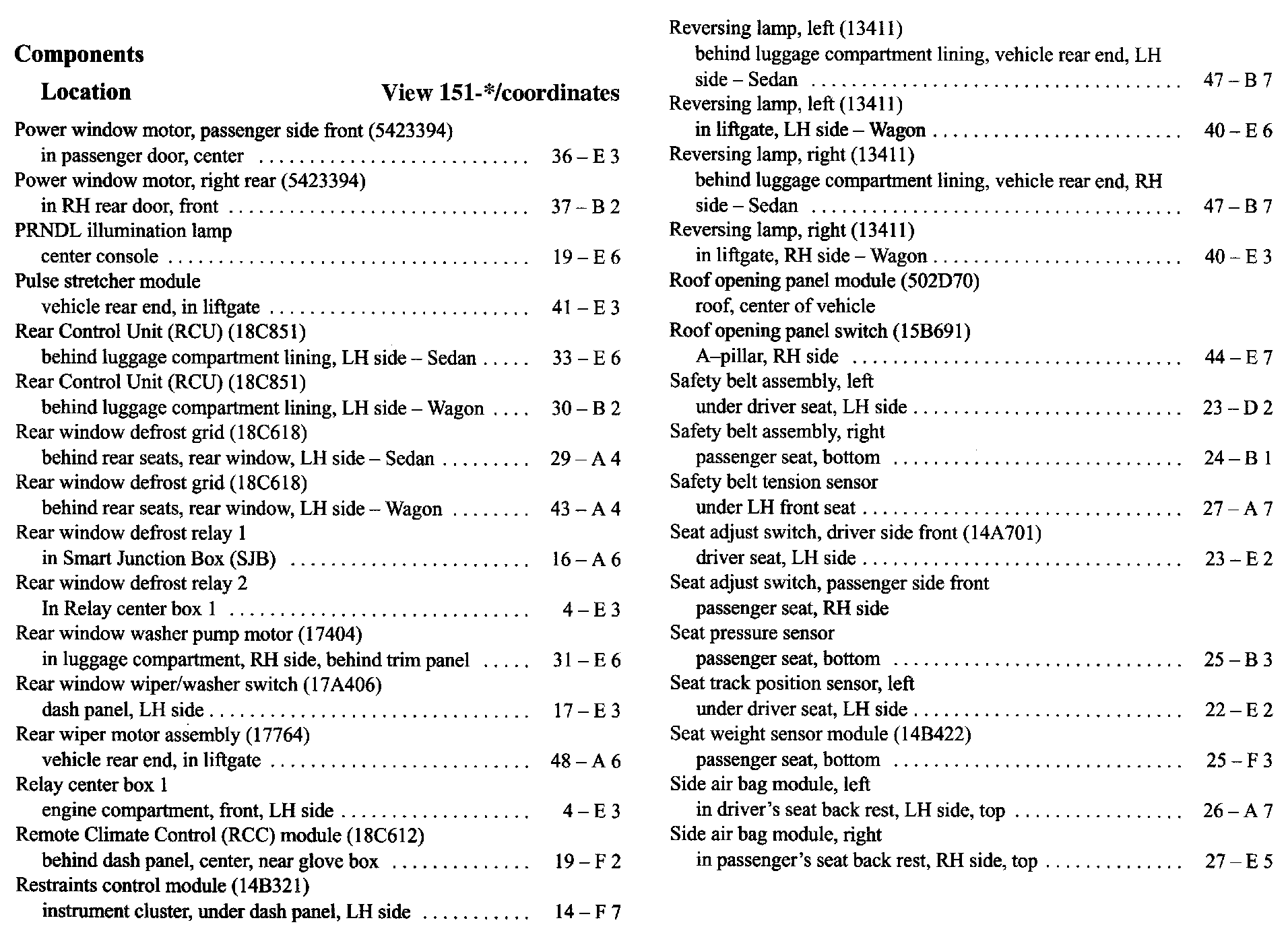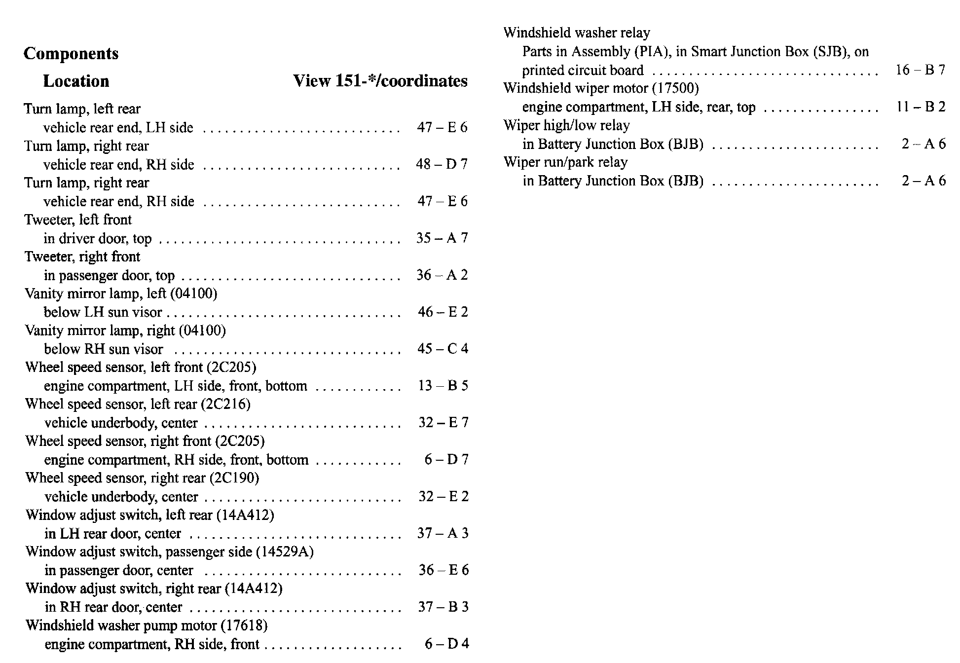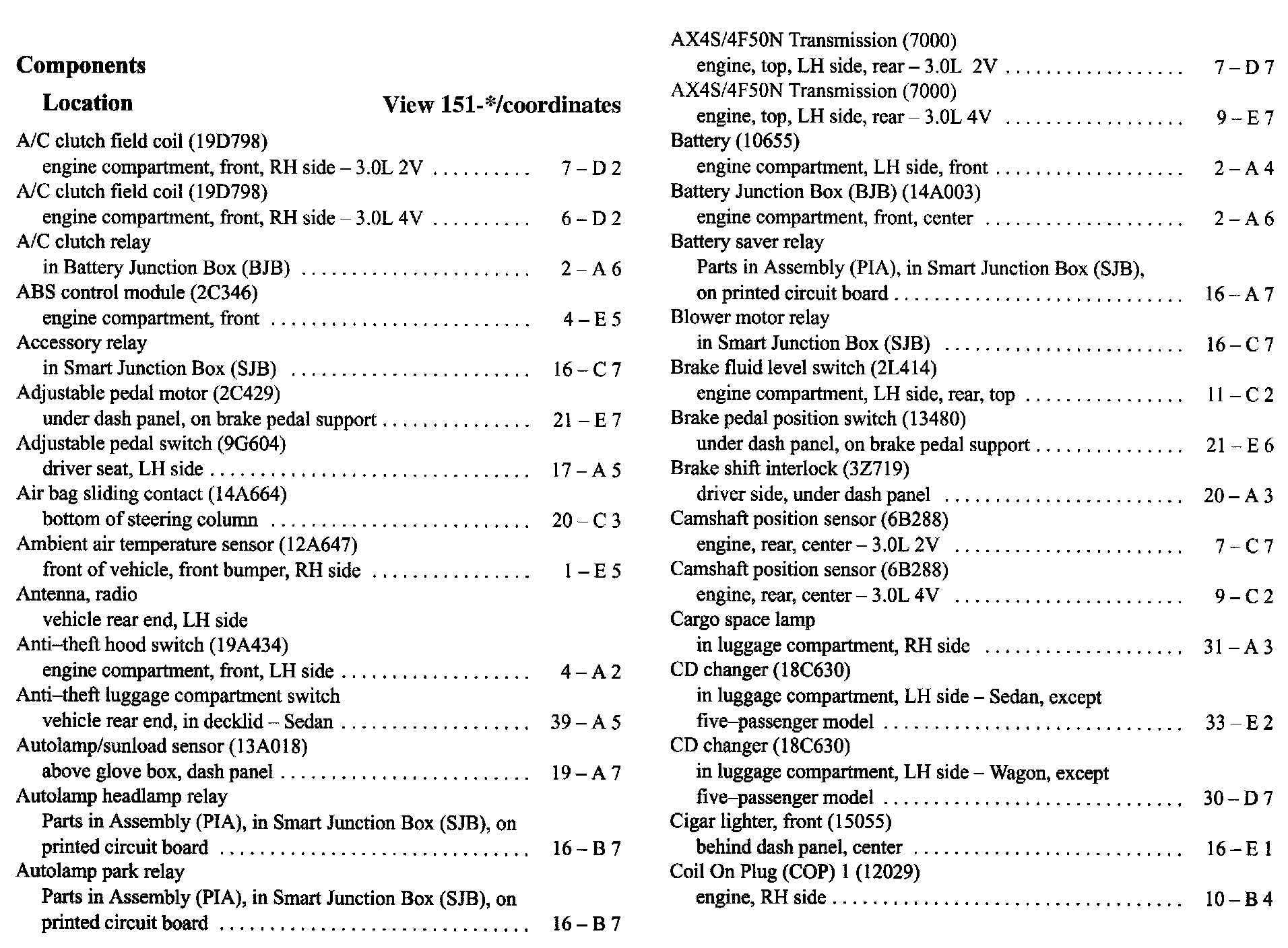 Component Location Index