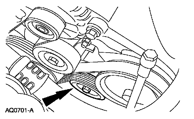 3. Loosen the tensioner and remove the drive belt from the A/C compressor pulley.