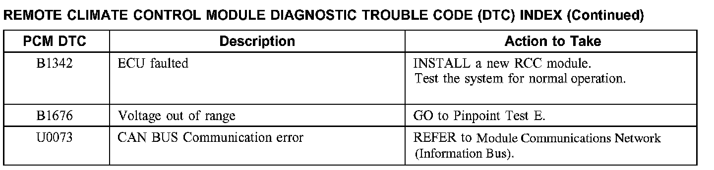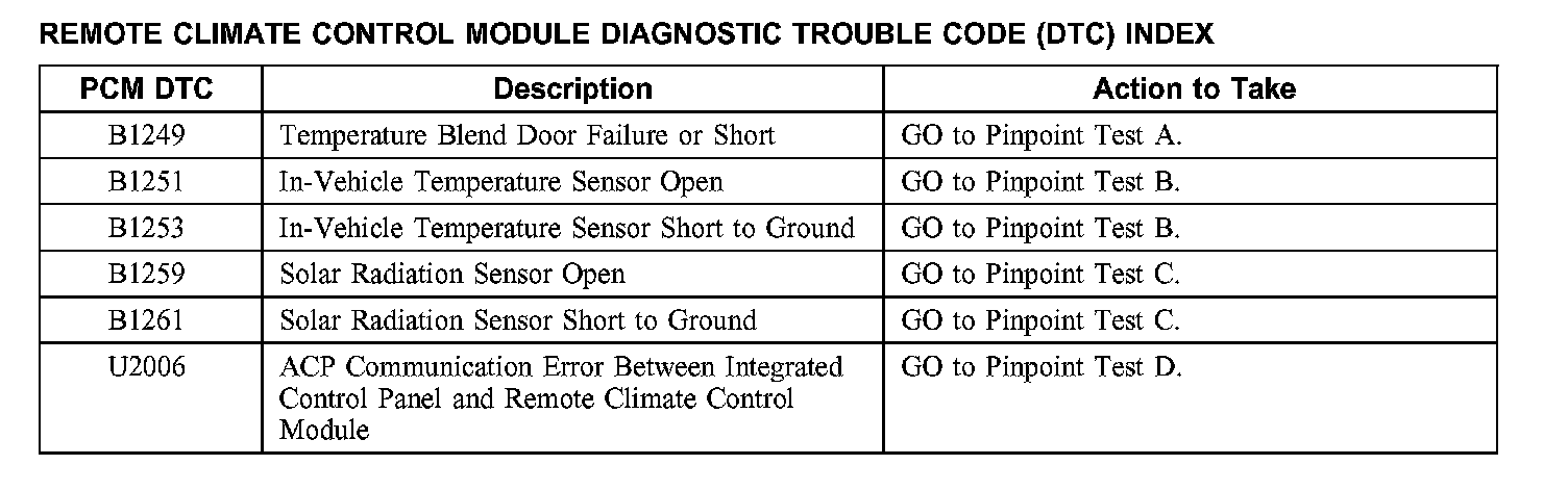 Remote Climate Control Module Diagnostic Trouble Code (DTC) Index
