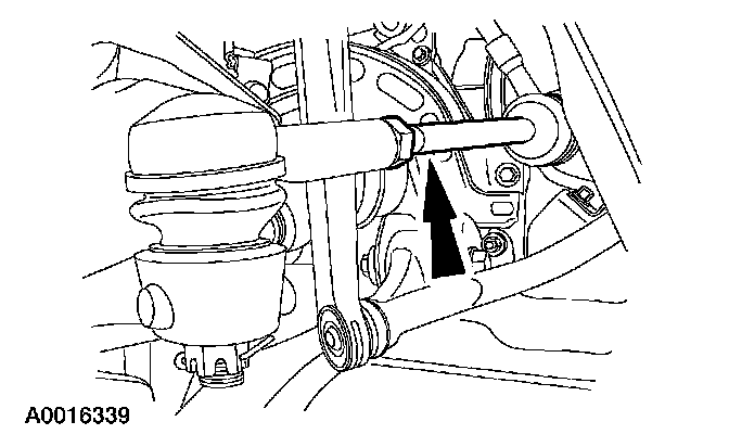 5. NOTE: Do not allow the steering gear bellows to twist when the front wheel spindle tie-rod is rotated.