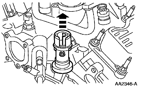 5. NOTE: The oil pump driveshaft might not come out with the camshaft synchronizer. If so, retrieve the oil pump drive shaft before proceeding.