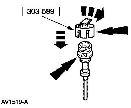 Install the special tool on the camshaft synchronizer by rotating the tool until it engages the notch in the camshaft synchronizer housing and the armature.