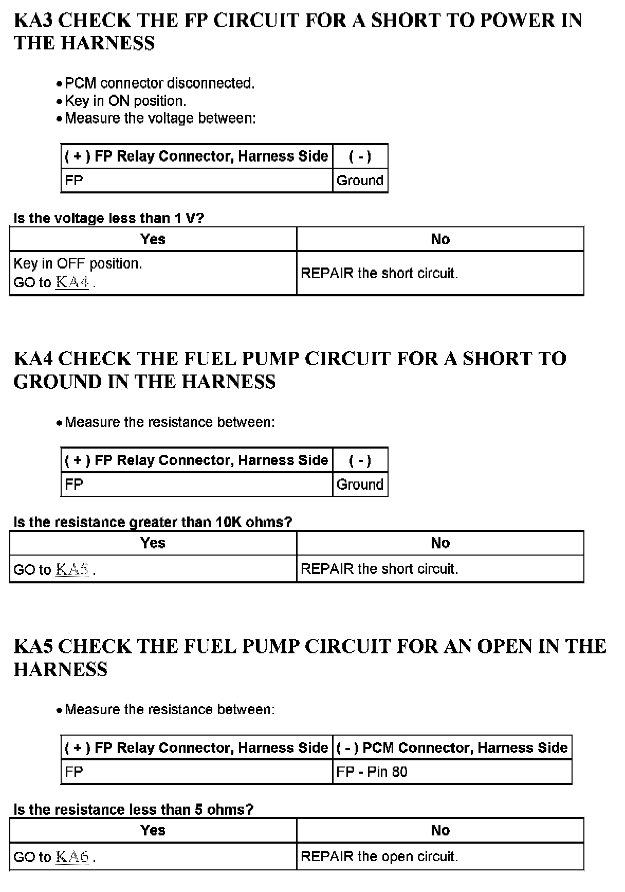 Tests KA: Fuel Pump (FP) Relay