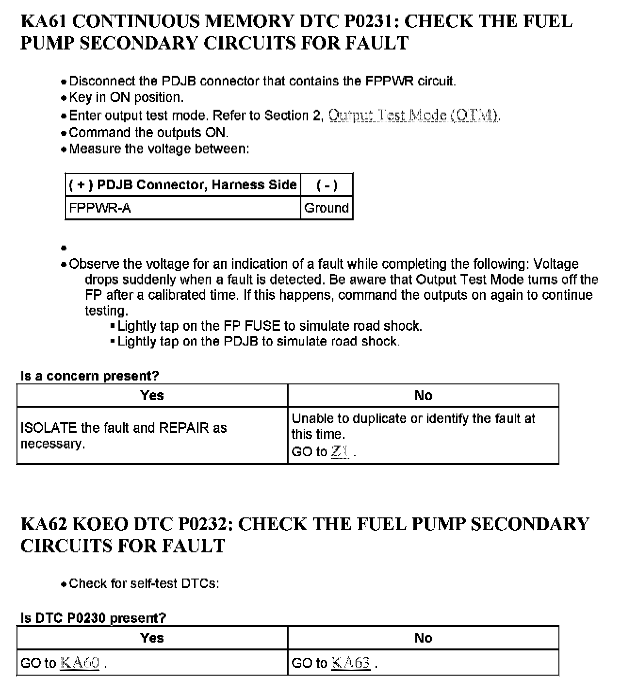 PINPOINT TEST KA: FUEL PUMP (FP) RELAY