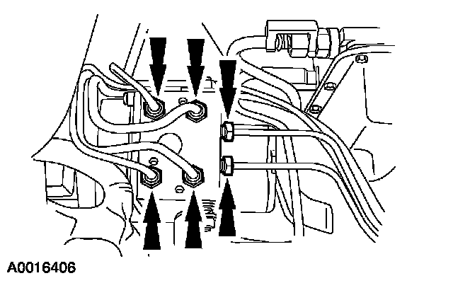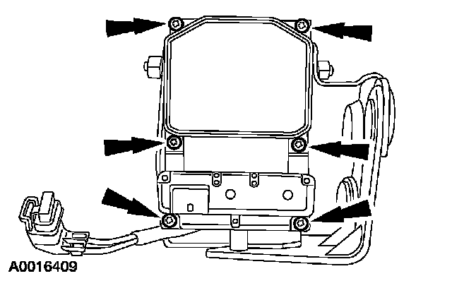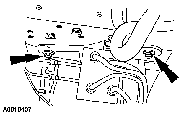 6. Remove the bolts and the ABS module/hydraulic control unit (HCU) assembly.