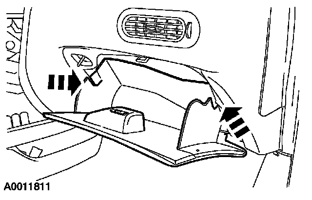 3. Open the glove compartment. Pressing the tabs inward, lower the glove compartment towards the floor.