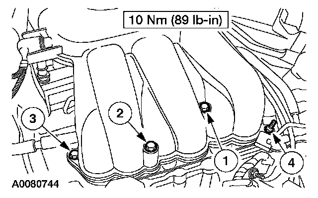 Upper intake manifold bolts 10Nm (89 in.lbs.)