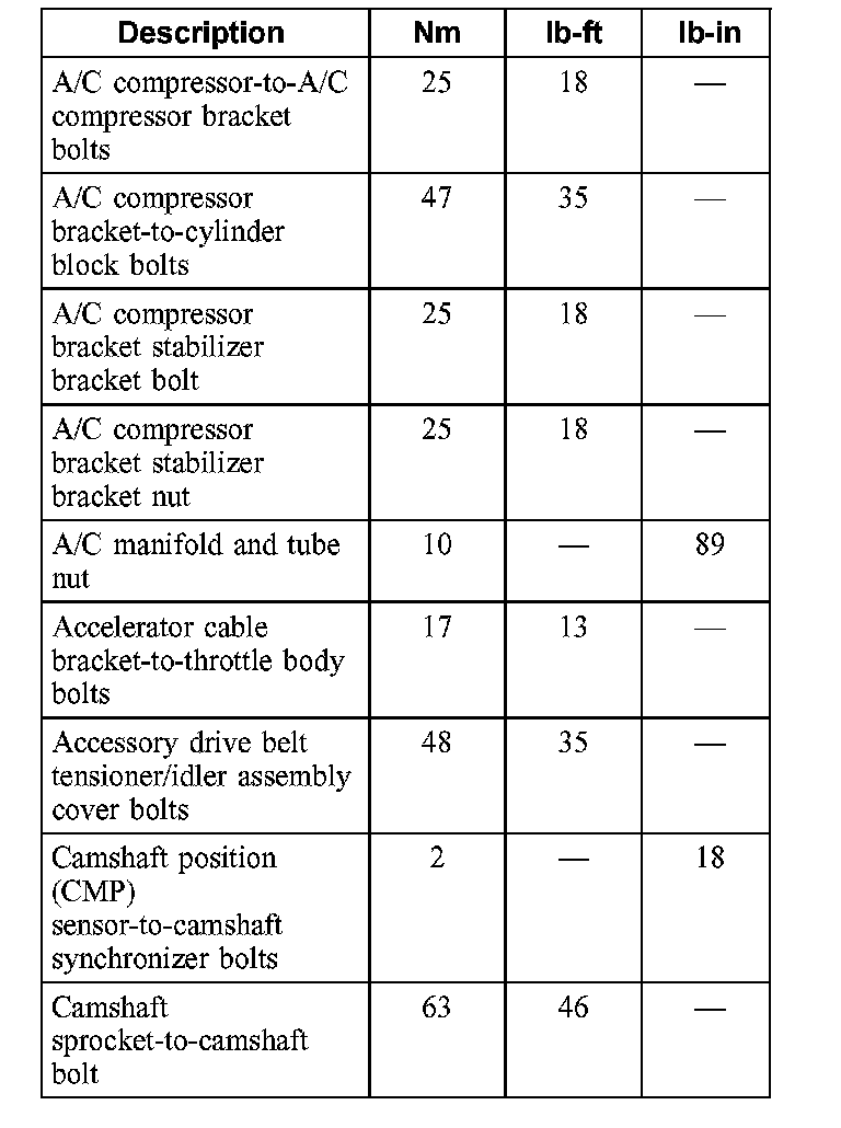 Camshaft sprocket-to-camshaft bolt 63 Nm (46 Ft.lbs.)