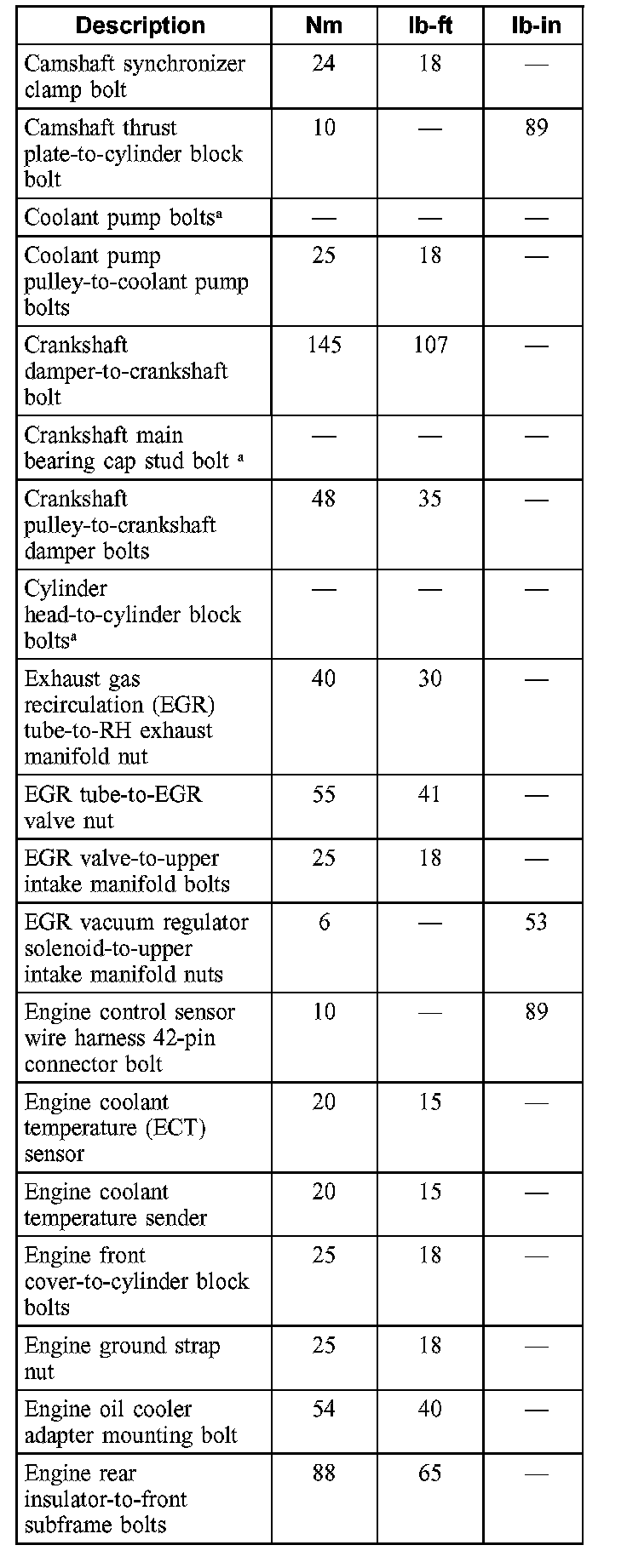 Crankshaft pulley-to-crankshaft damper bolts 48 Nm (35 ft. lbs.)