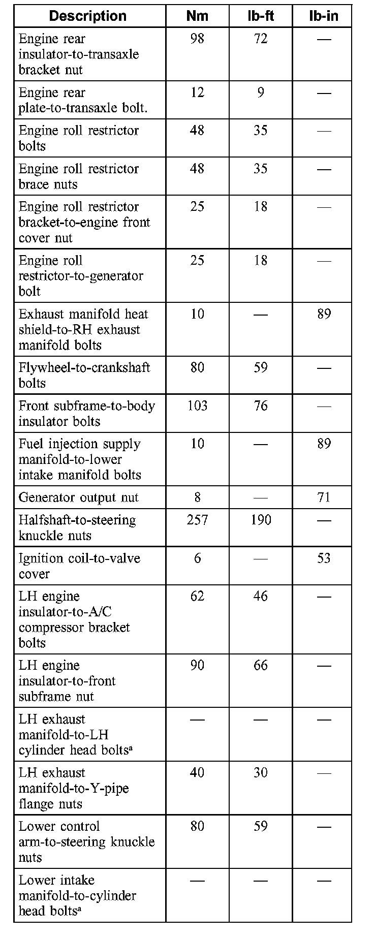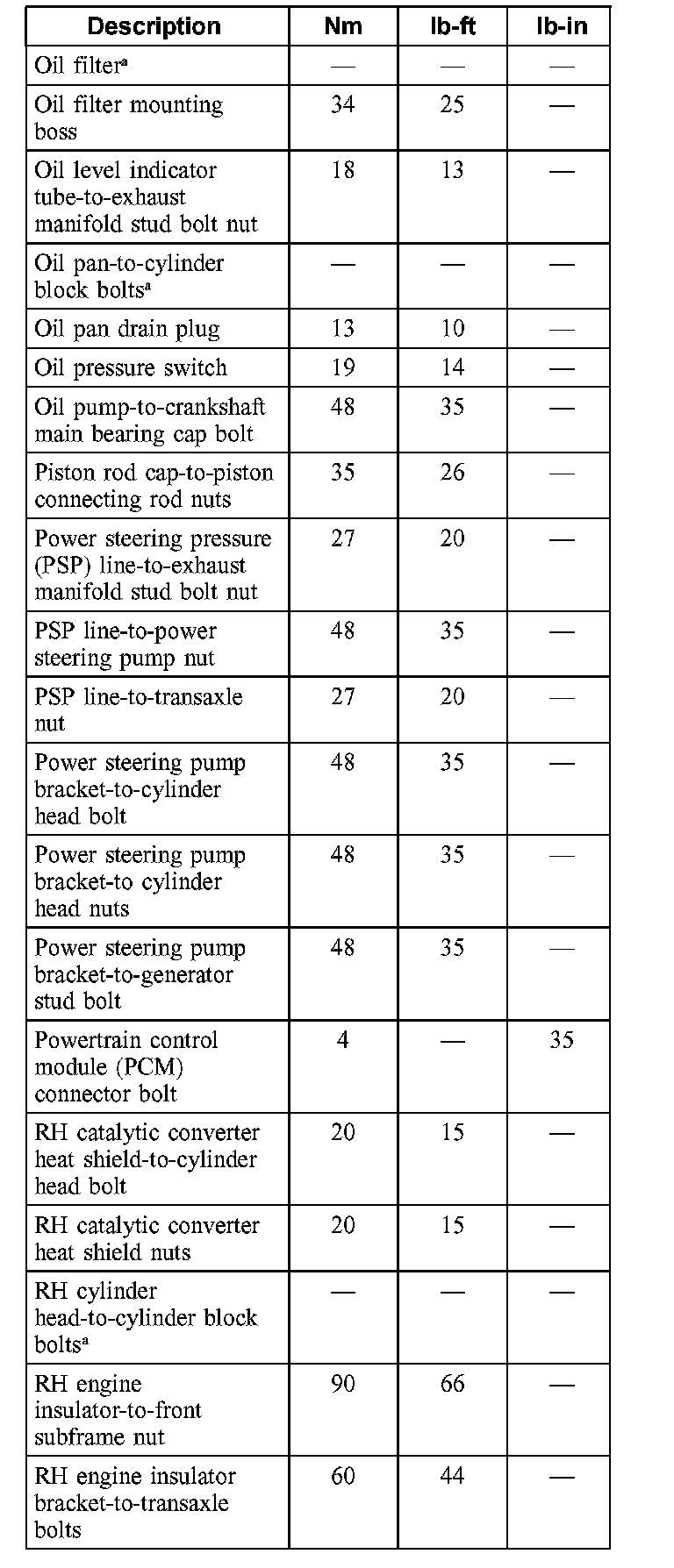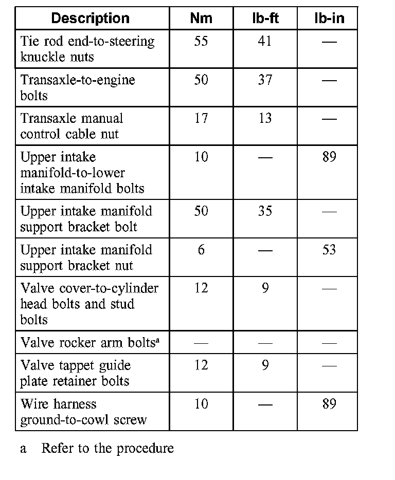 Torque Specifications
