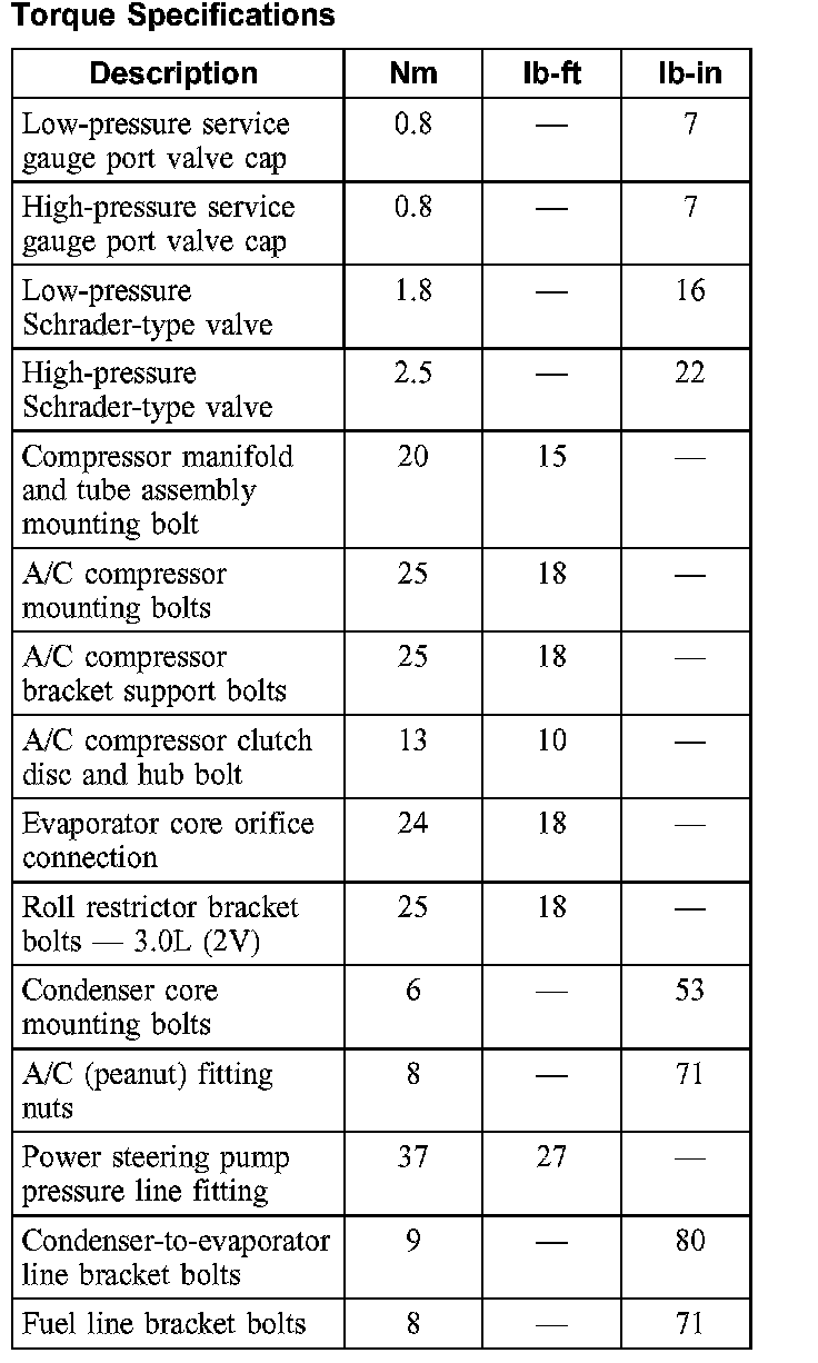 Torque Specifications: