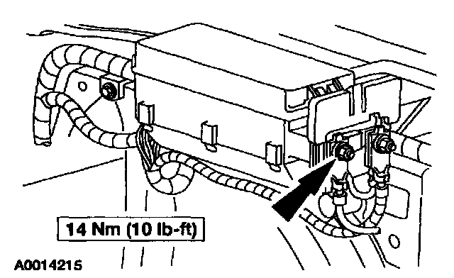 2. Remove the nut and disconnect the battery positive cable from the power distribution box.
