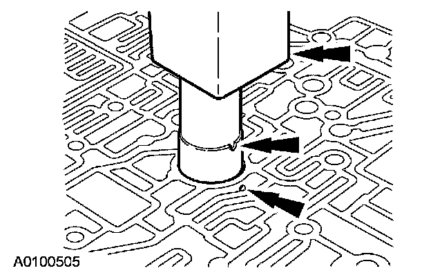 ^ Verify that the hole in the valve body sleeve aligns with the hole in the circuit passage.