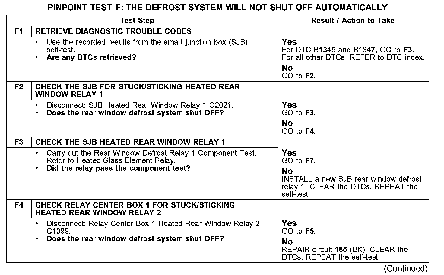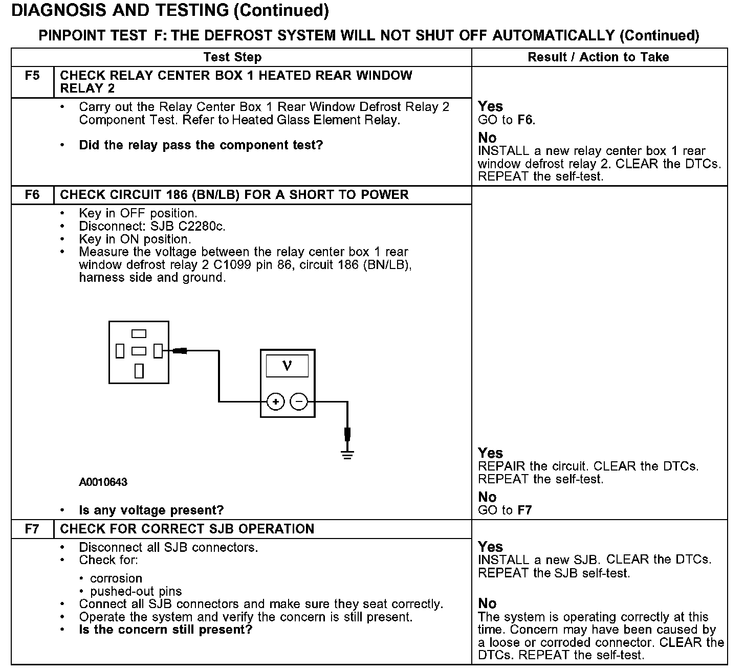 PINPOINT TEST F: THE DEFROST SYSTEM WILL NOT SHUT OFF AUTOMATICALLY