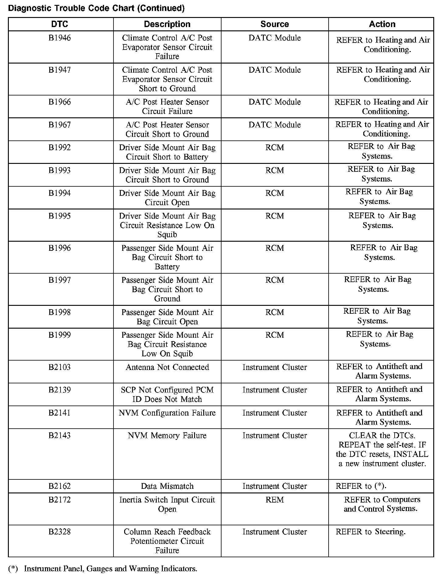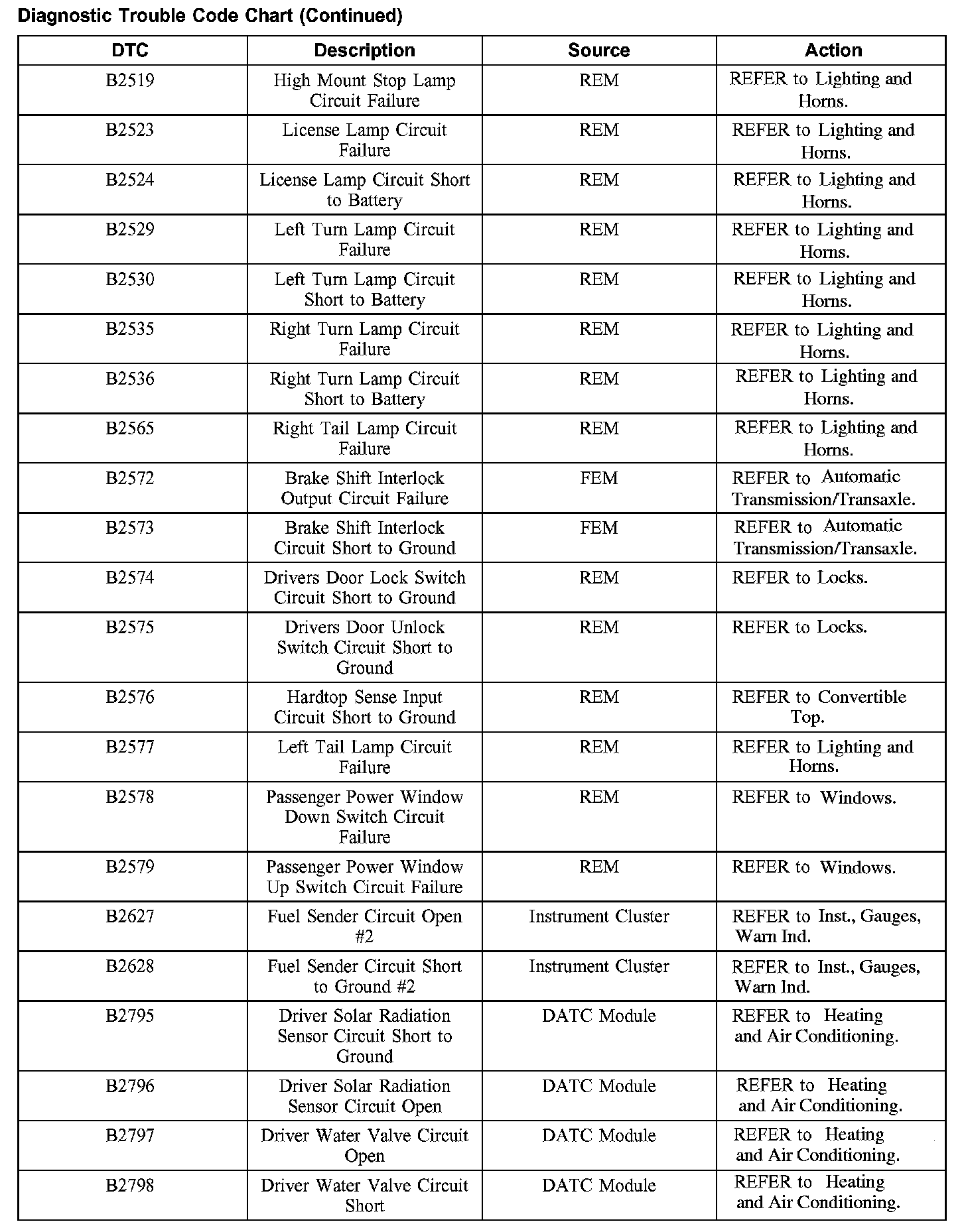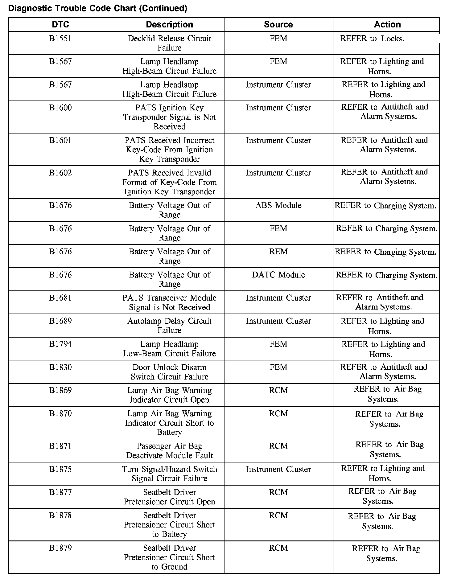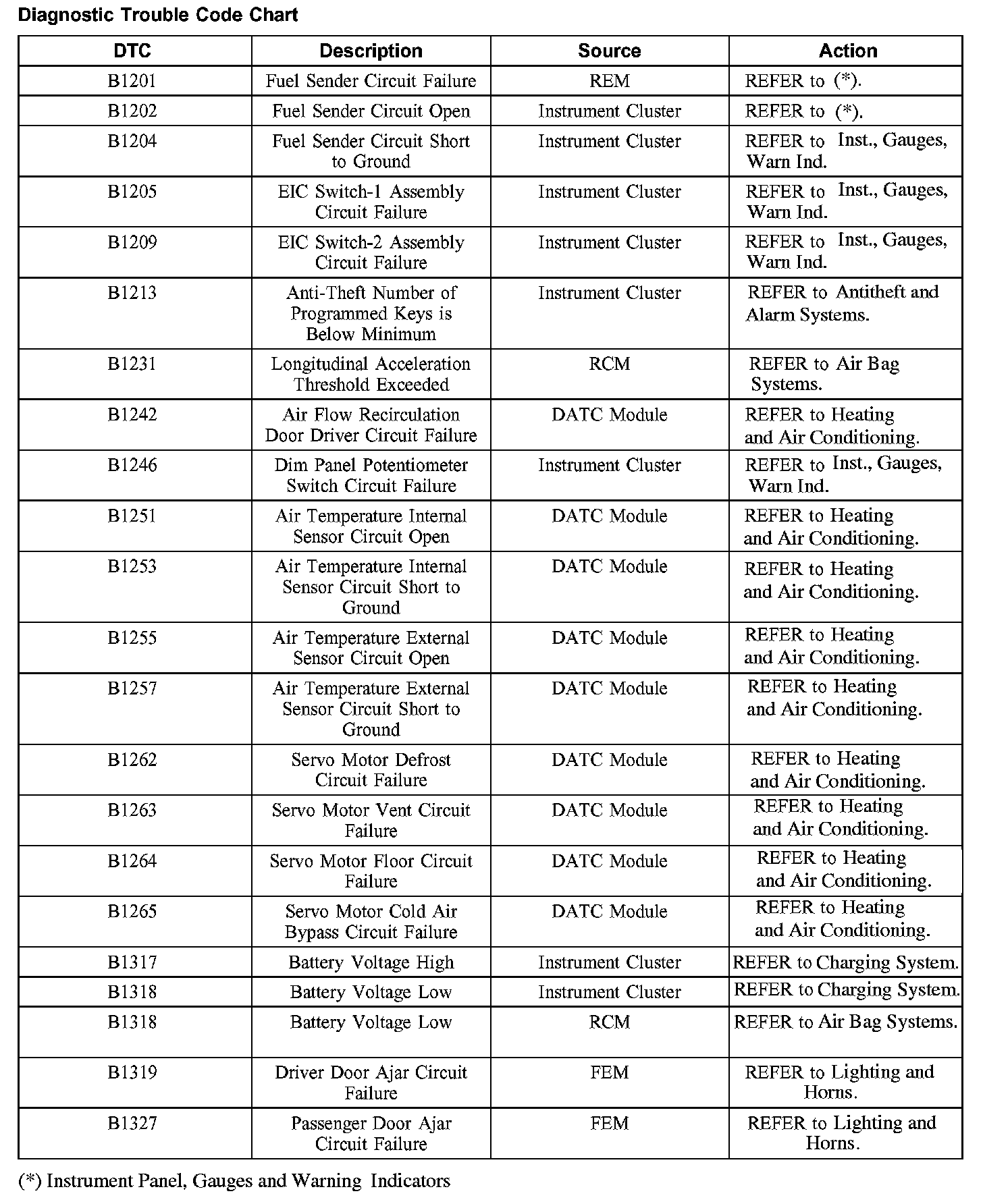 DIAGNOSTIC TROUBLE CODE (DTC) CHARTB1201-B1327: