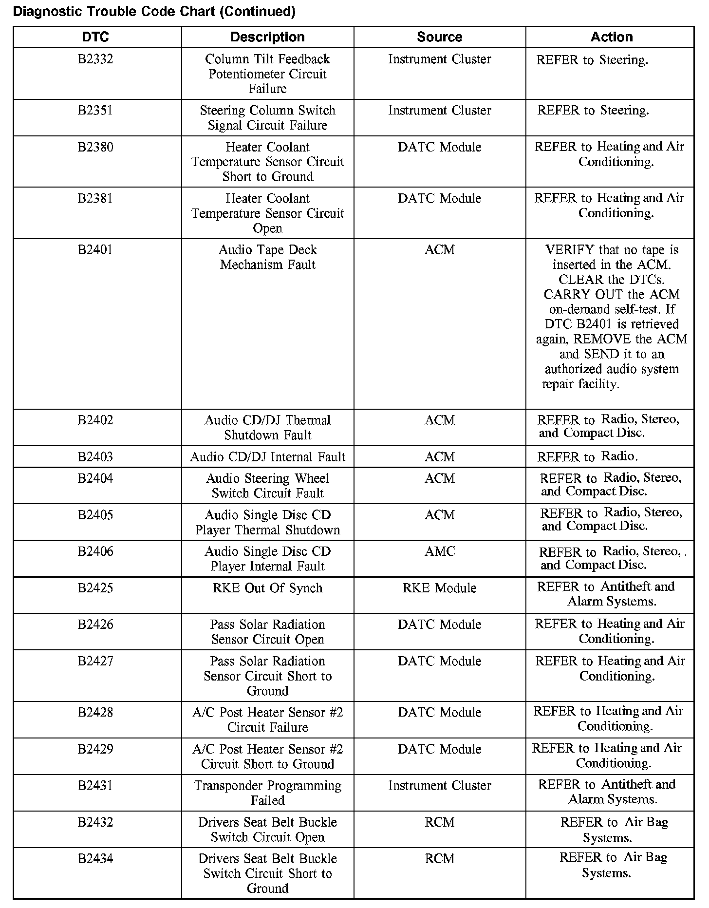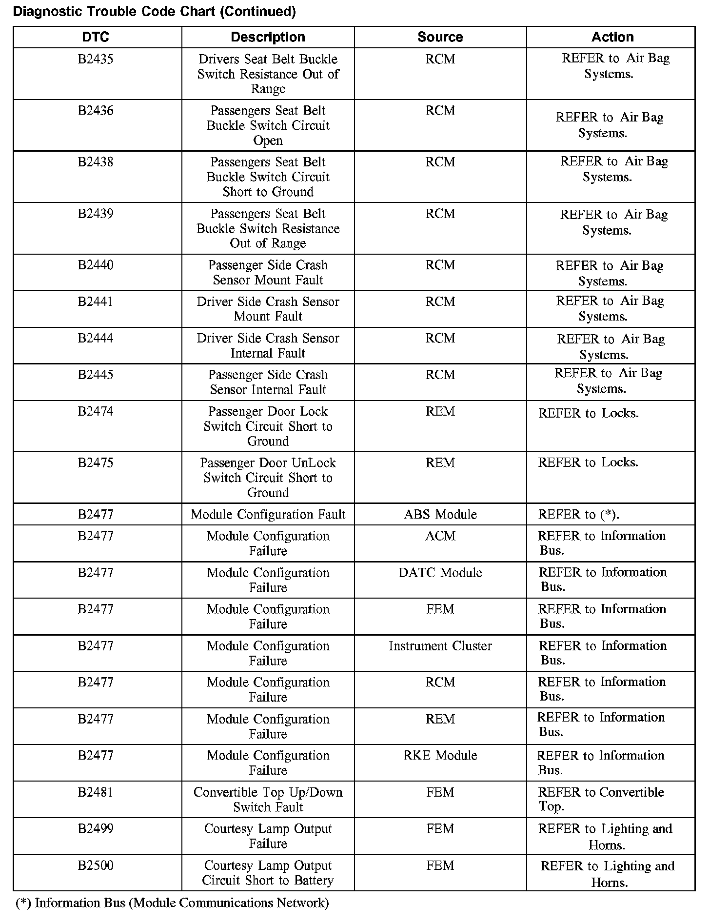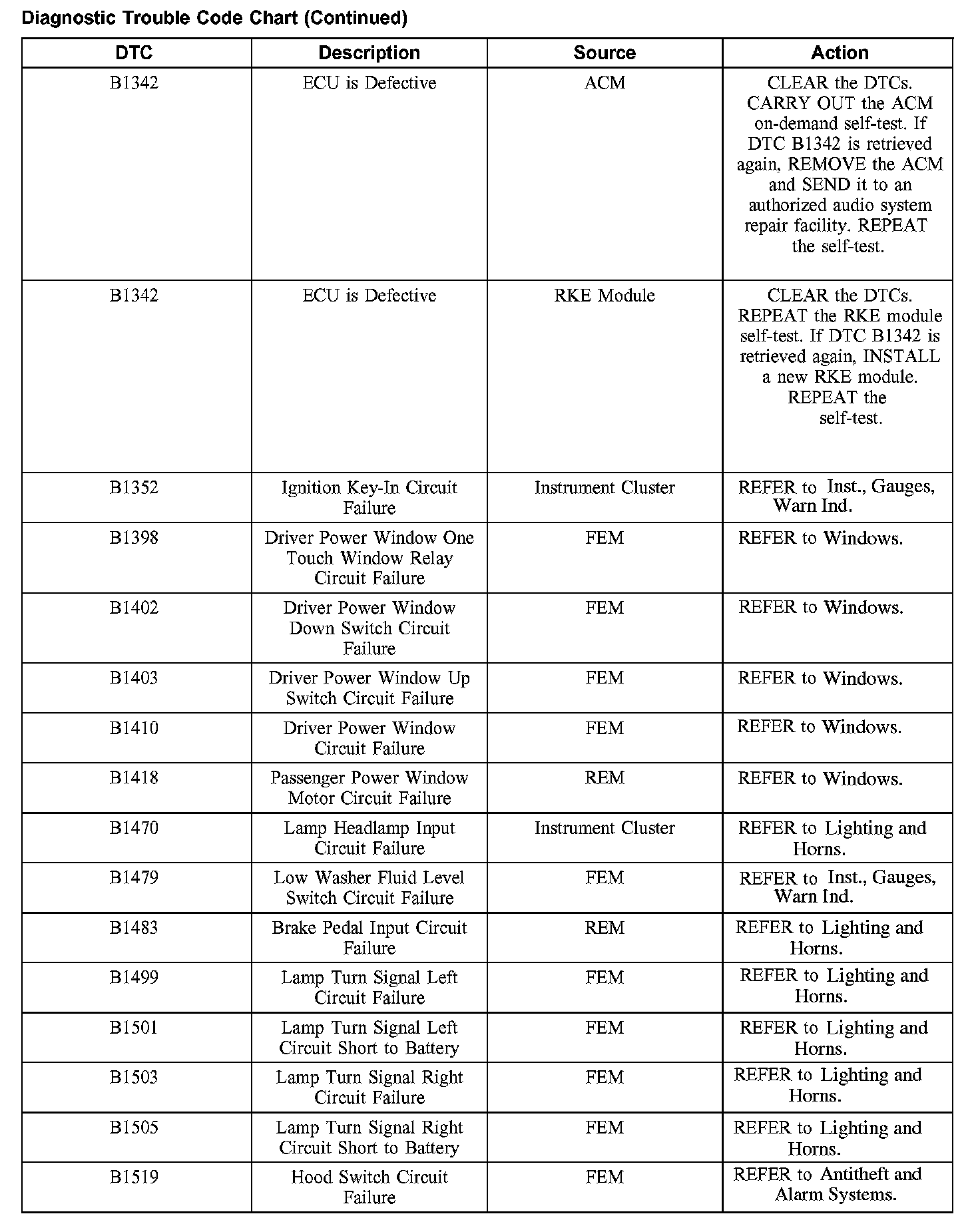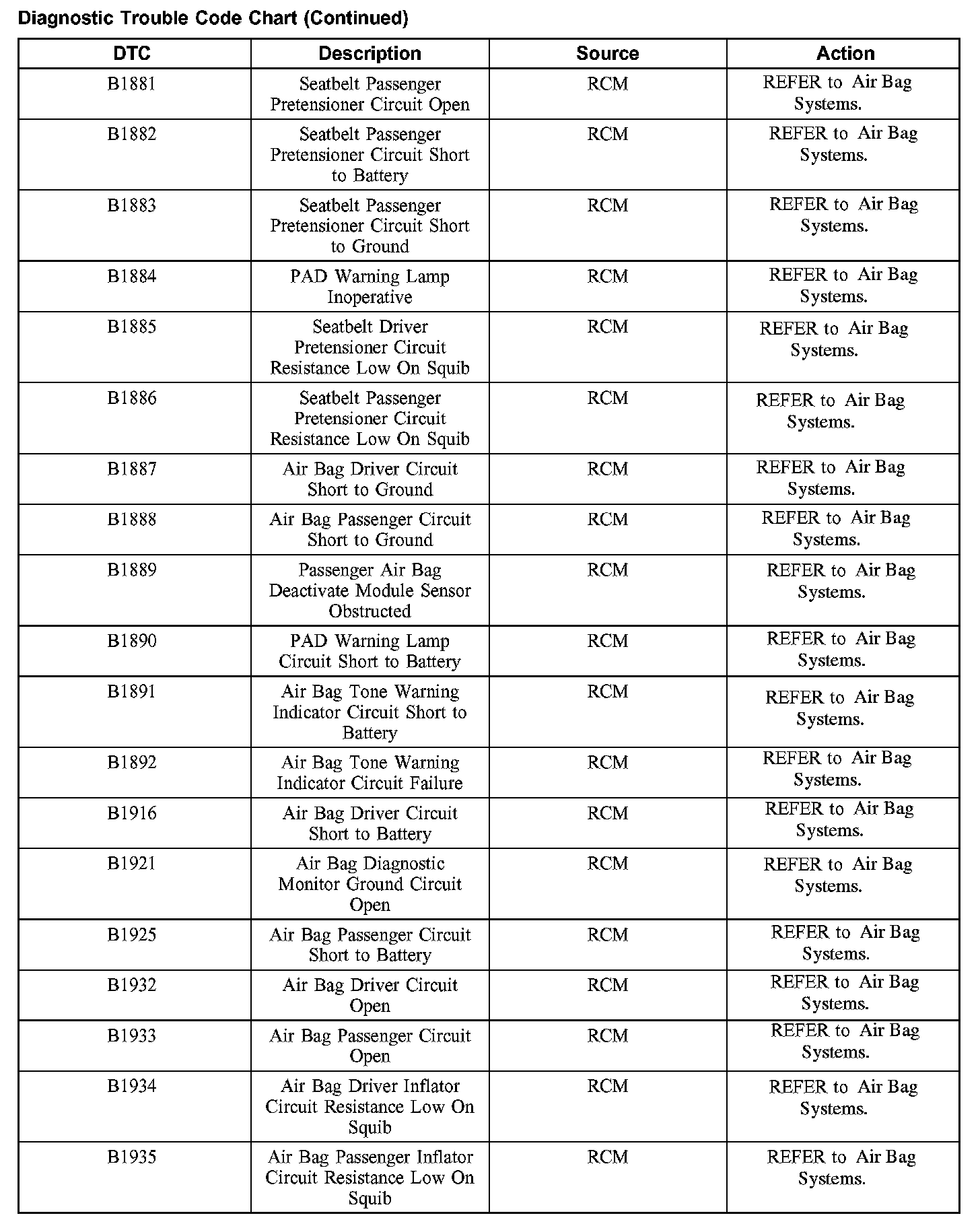 DIAGNOSTIC TROUBLE CODE (DTC) CHARTB1201-B1327: